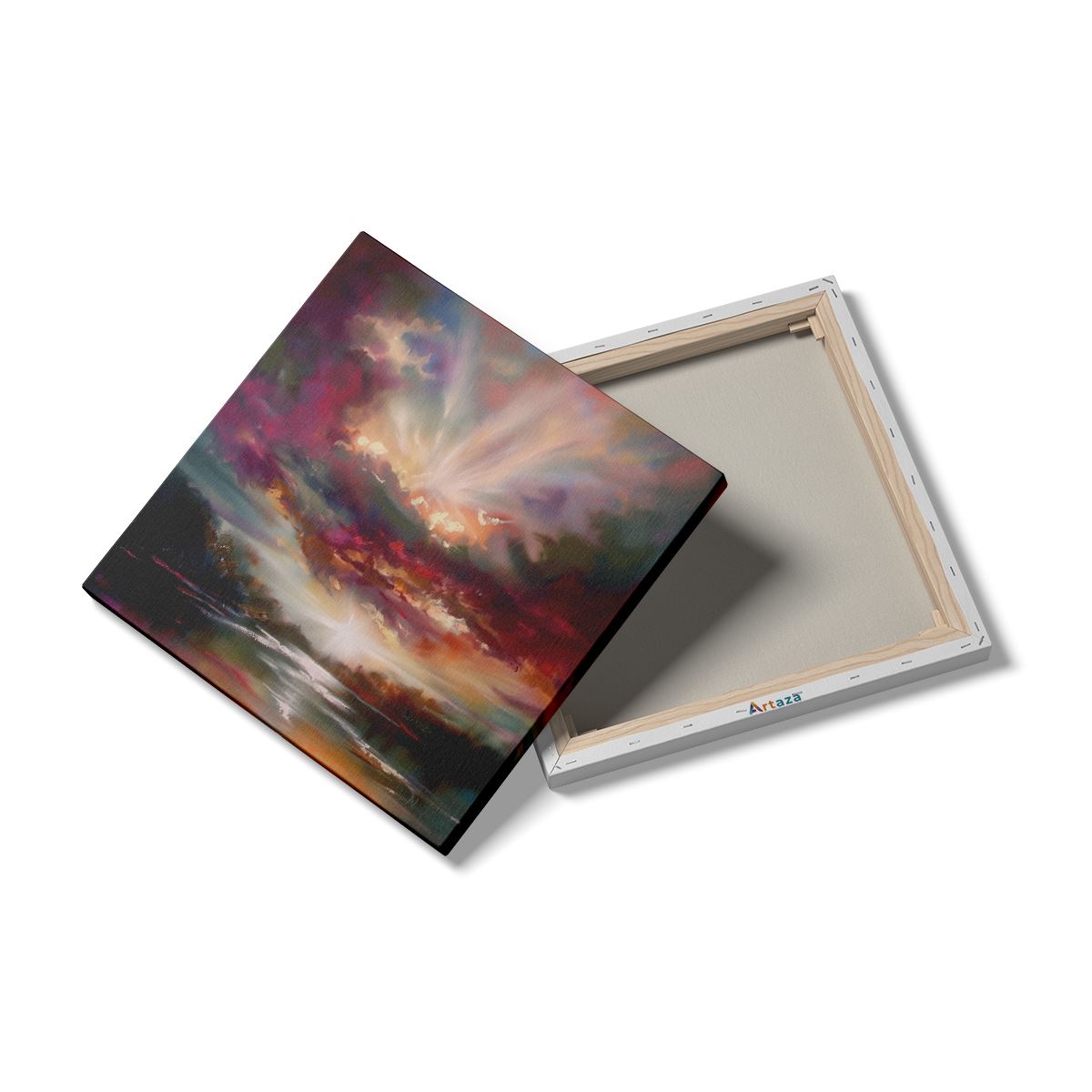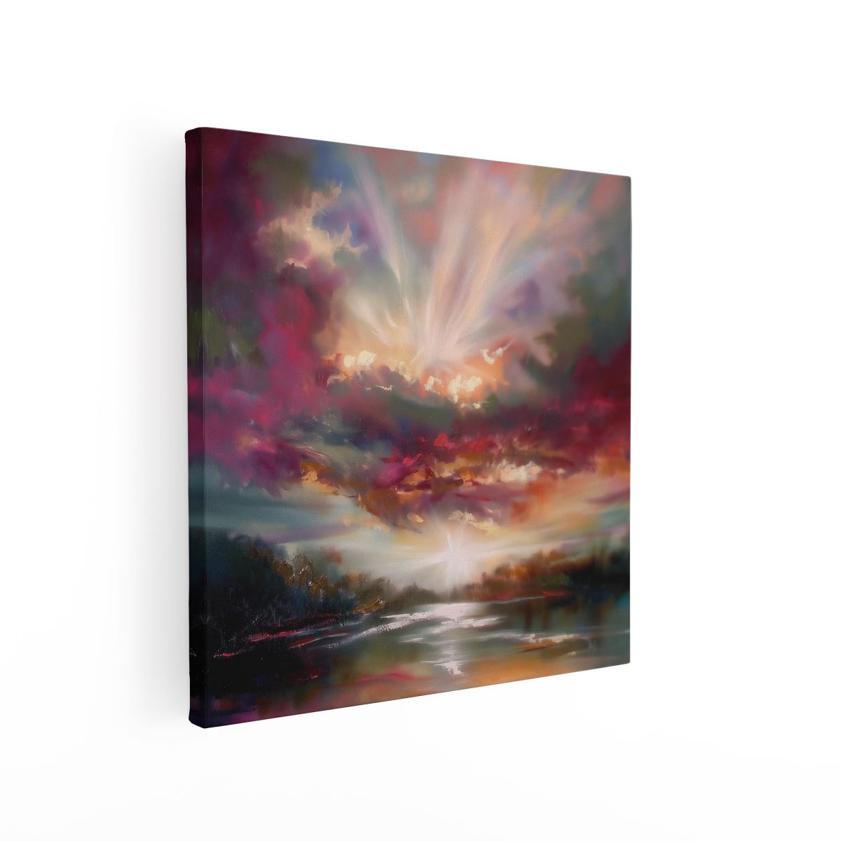 Schilderij Kunstwerk van een Zonsondergang boven een Rivier