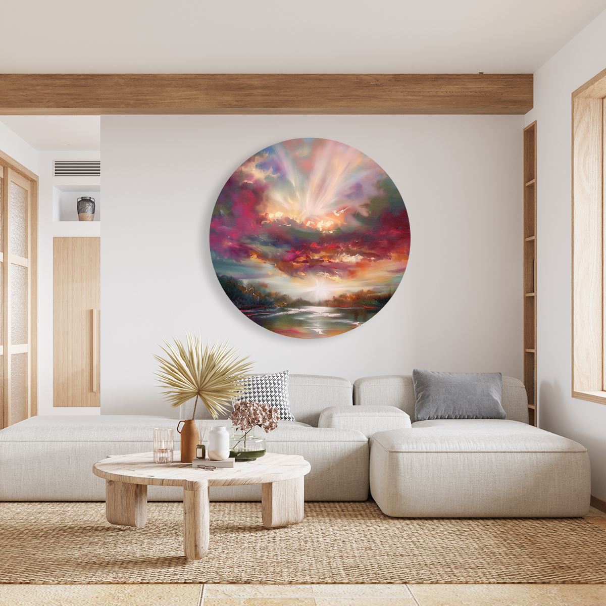 Wandcirkel Kunstwerk van een Zonsondergang boven een Rivier