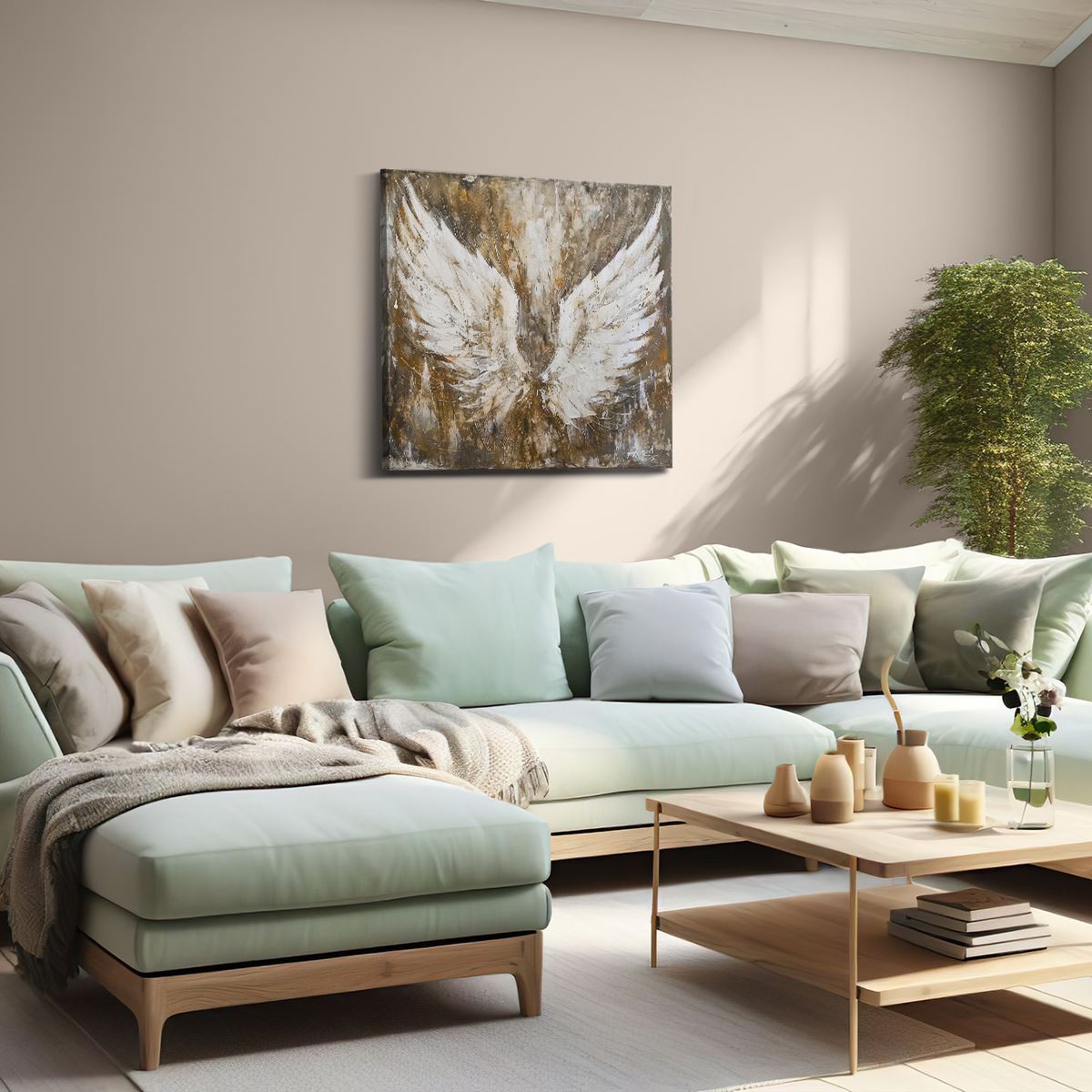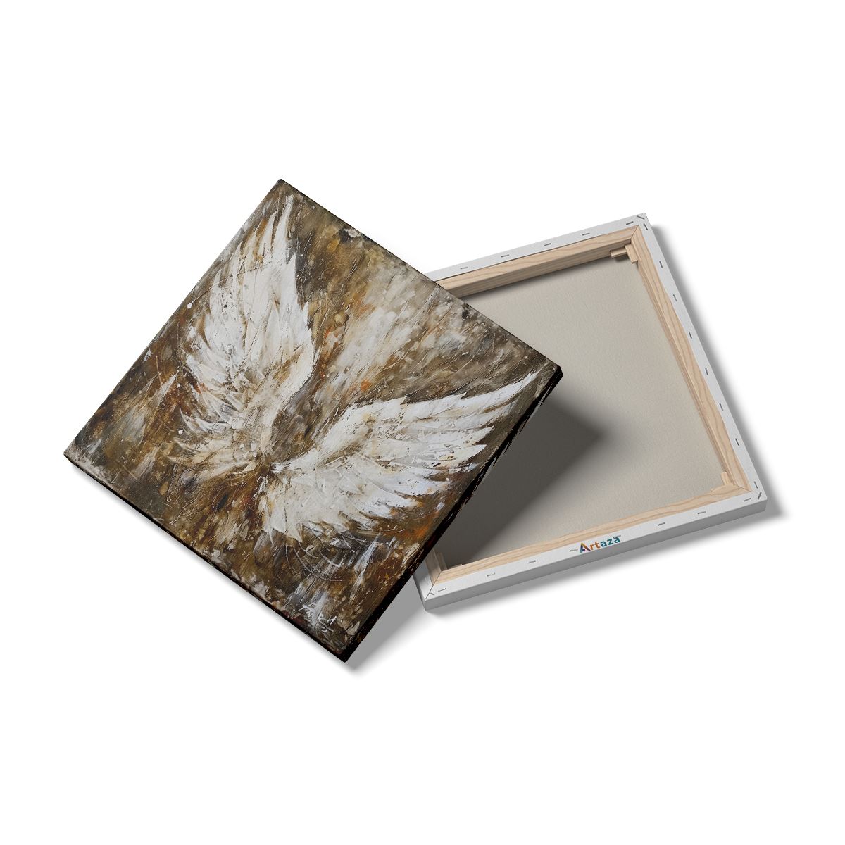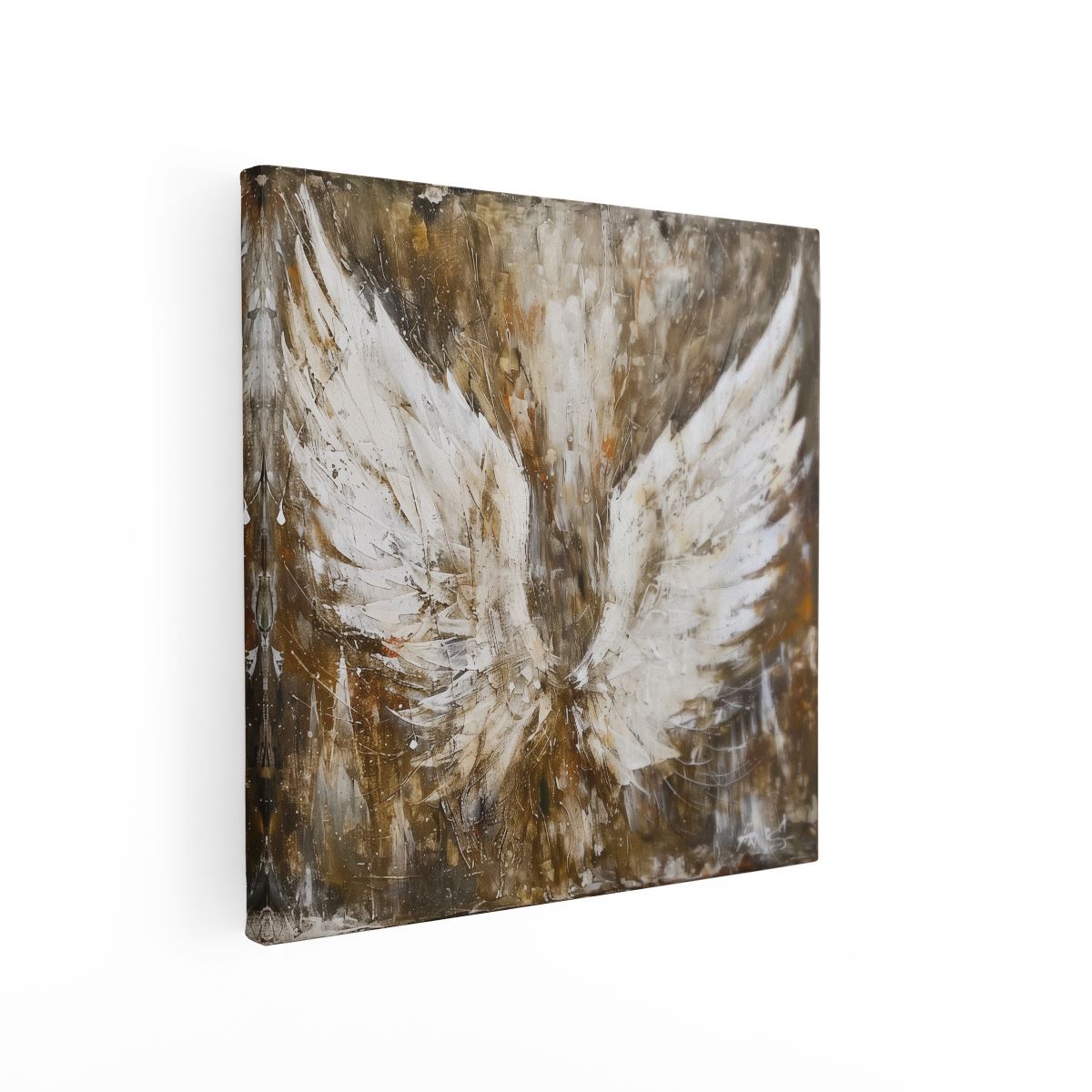Schilderij Kunstwerk van Engelenvleugels op een Bruine Achtergrond