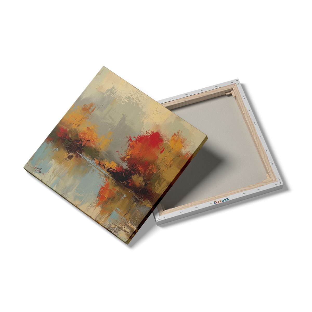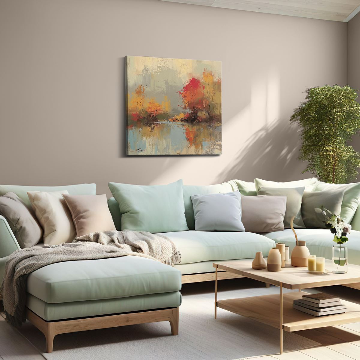 Schilderij Kunstwerk van Herfstbomen bij een Rivier