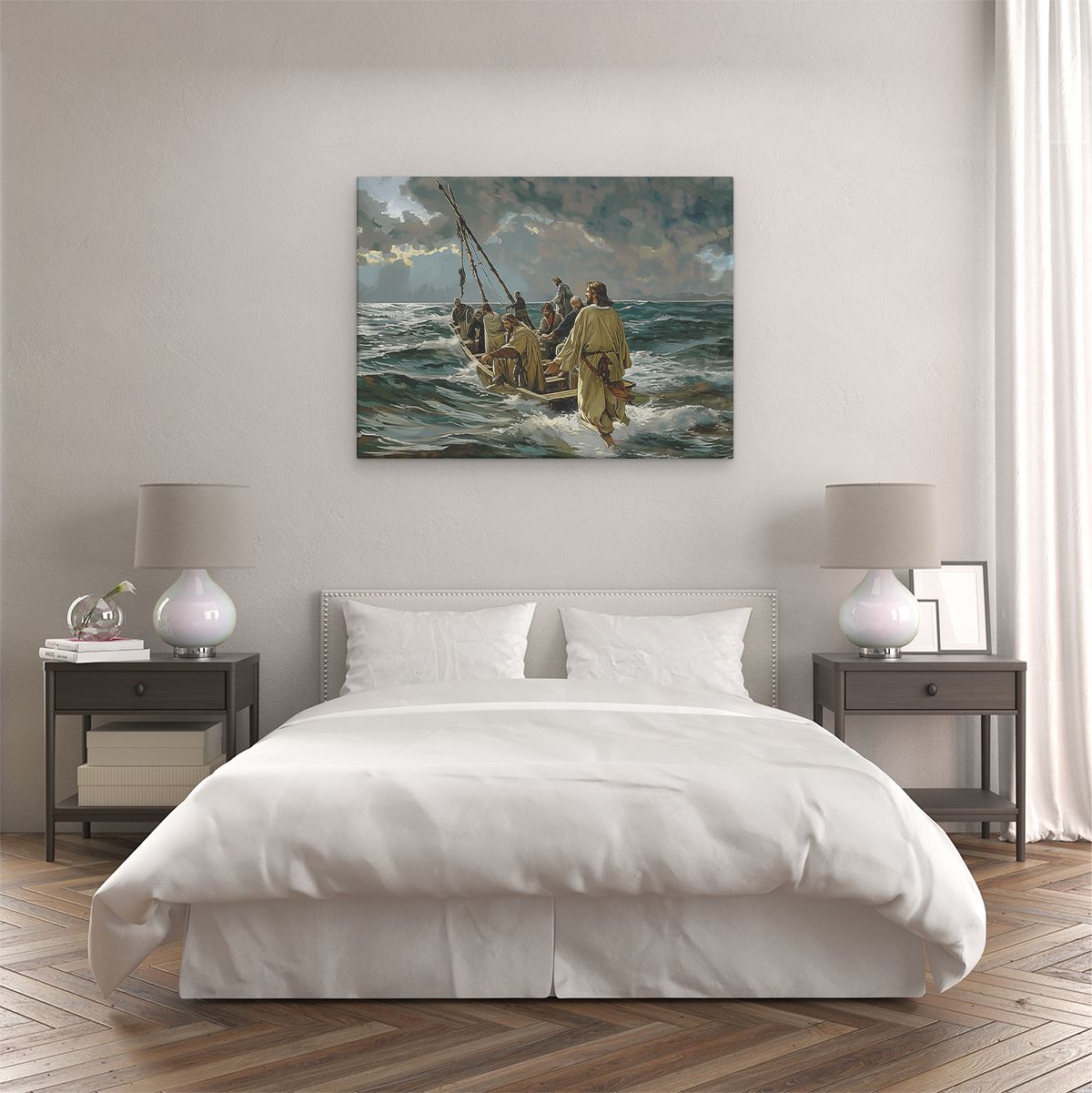 Schilderij Kunstwerk van Jezus en zijn Volgelingen in een Boot