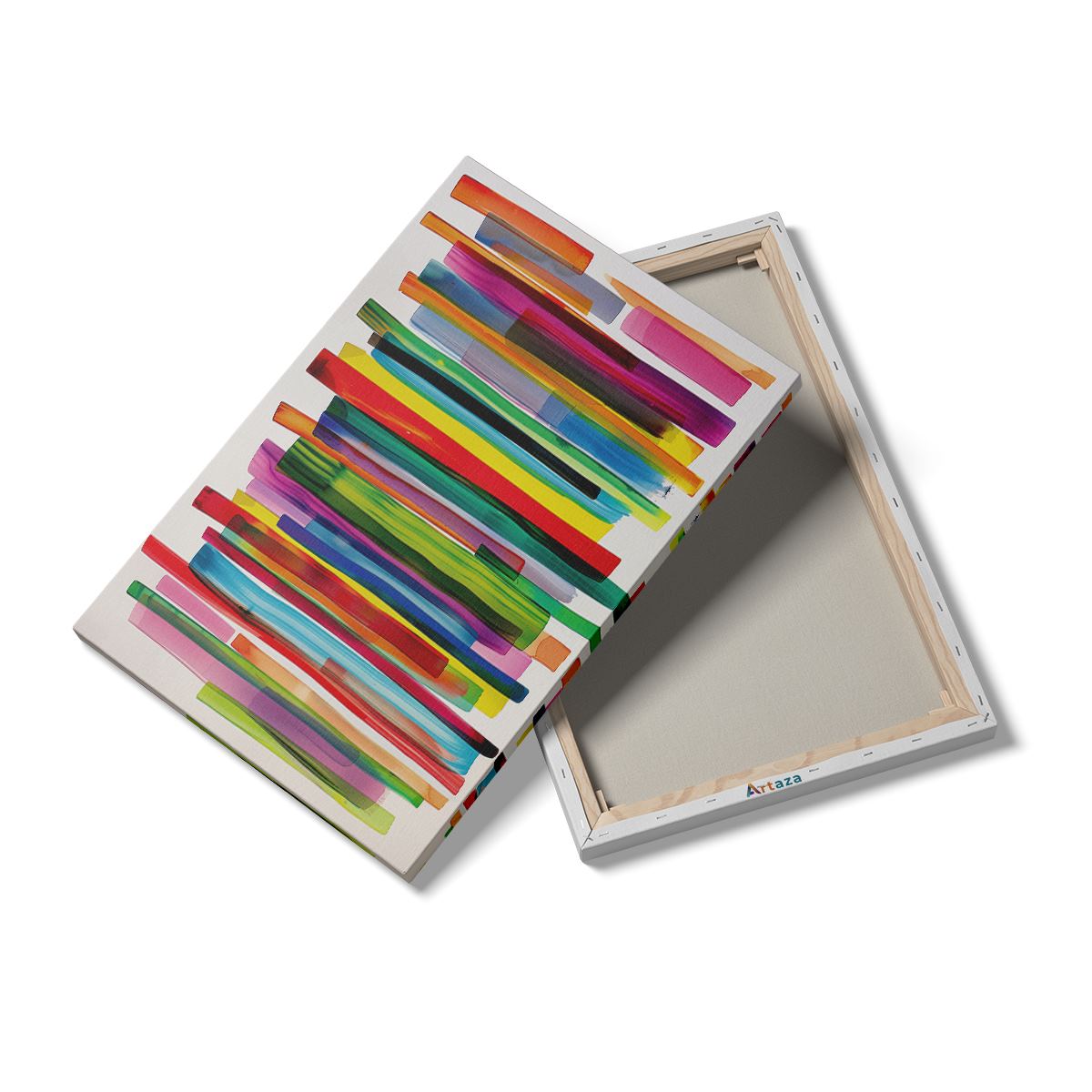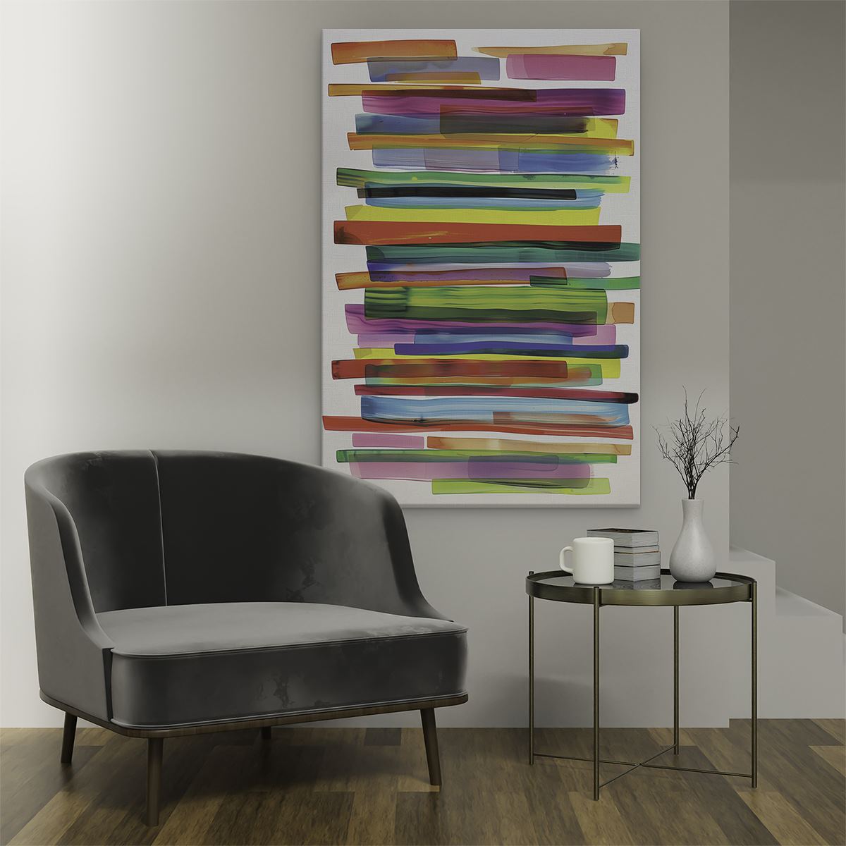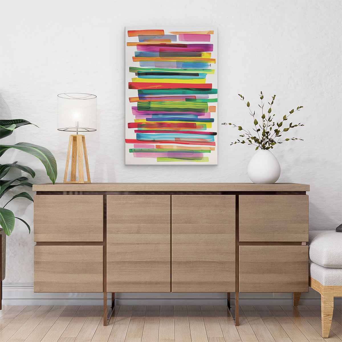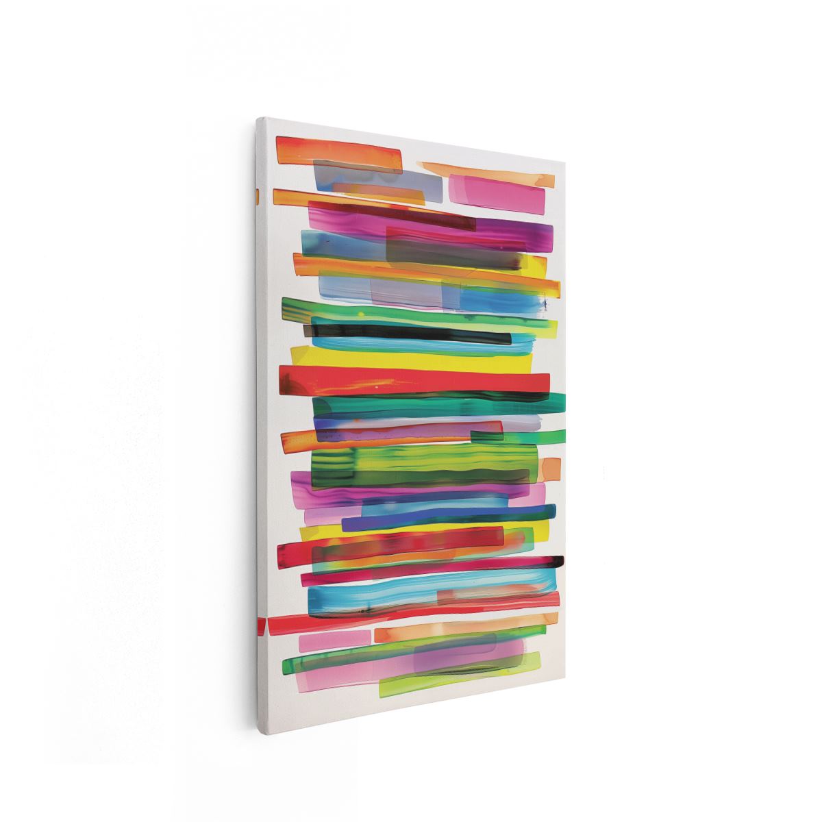 Schilderij Kunstwerk van Kleurrijke Strepen op een Witte Achtergrond