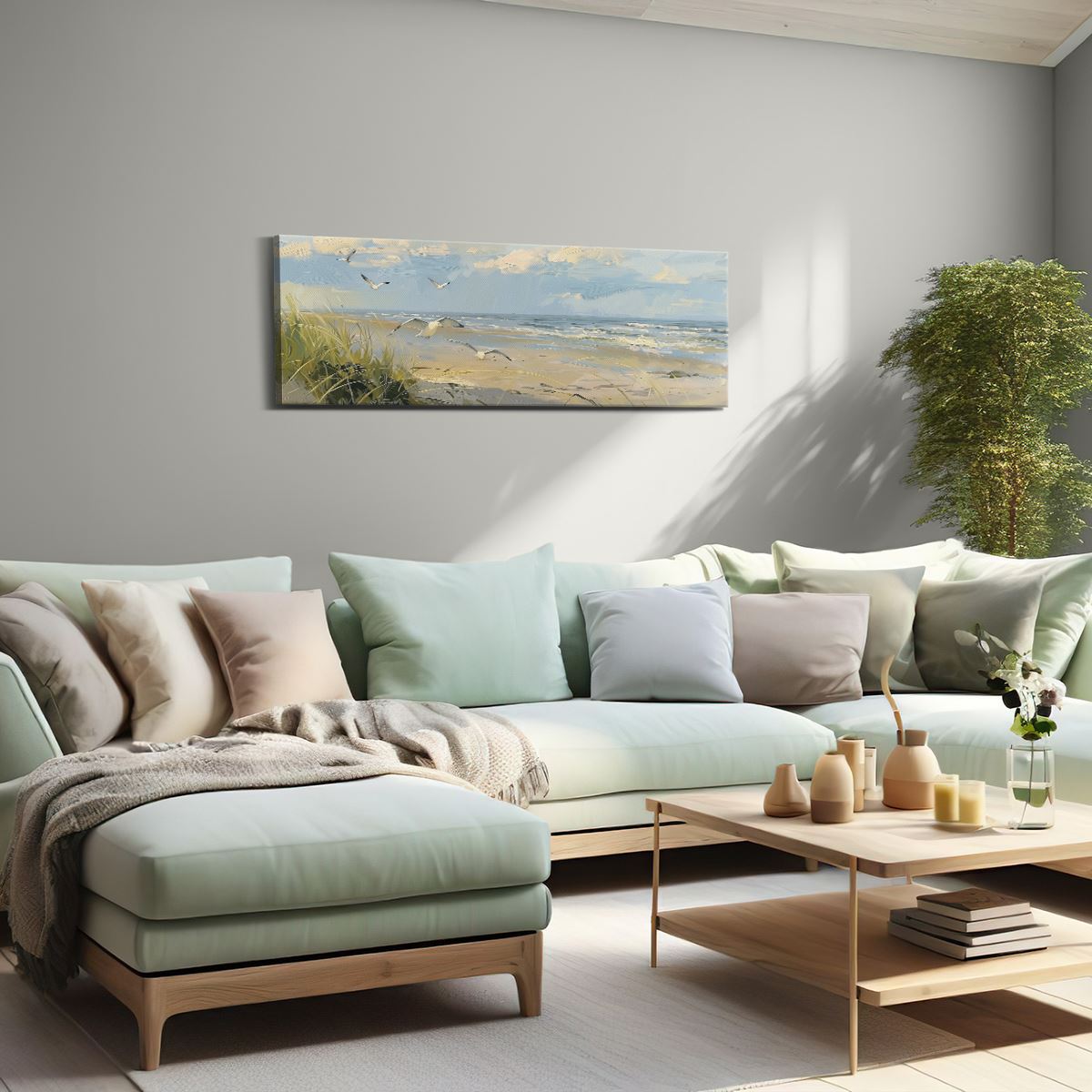 Schilderij Kunstwerk van Meeuwen op een Strand