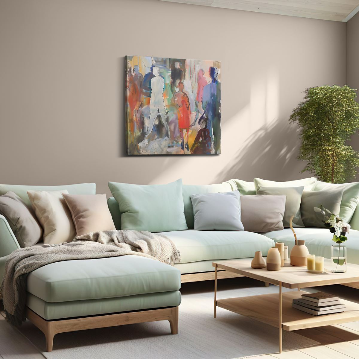 Schilderij Kunstwerk van Mensen in een Menigte