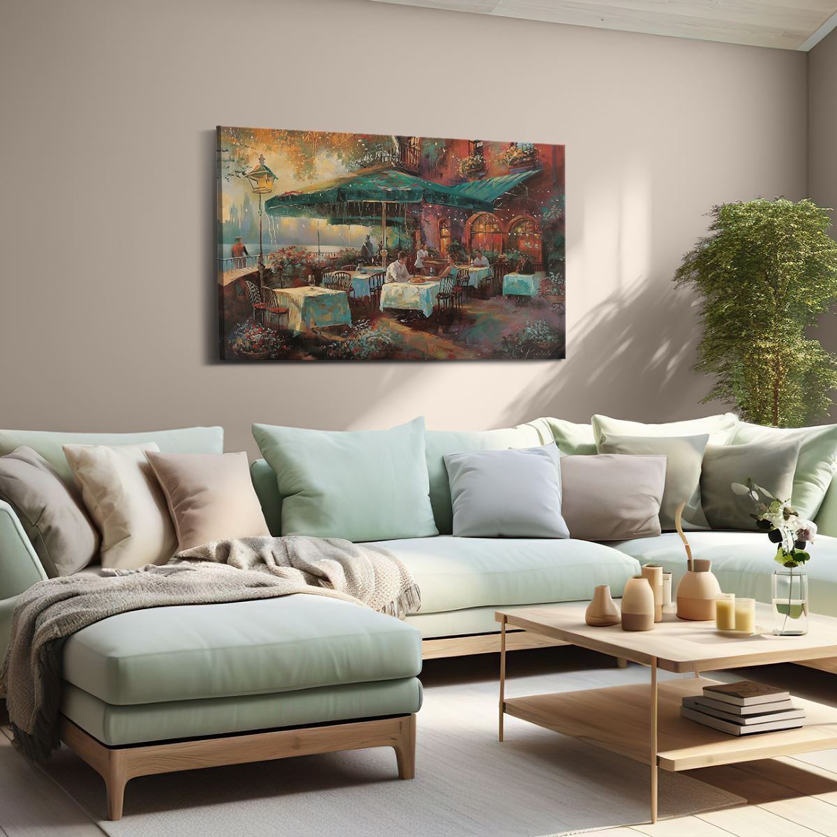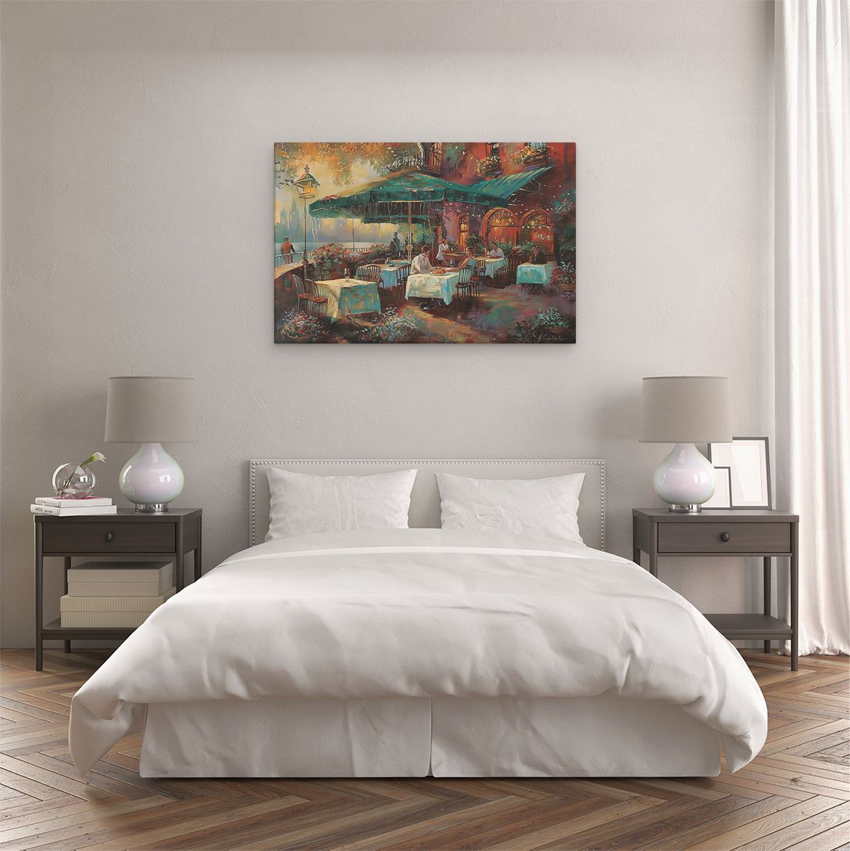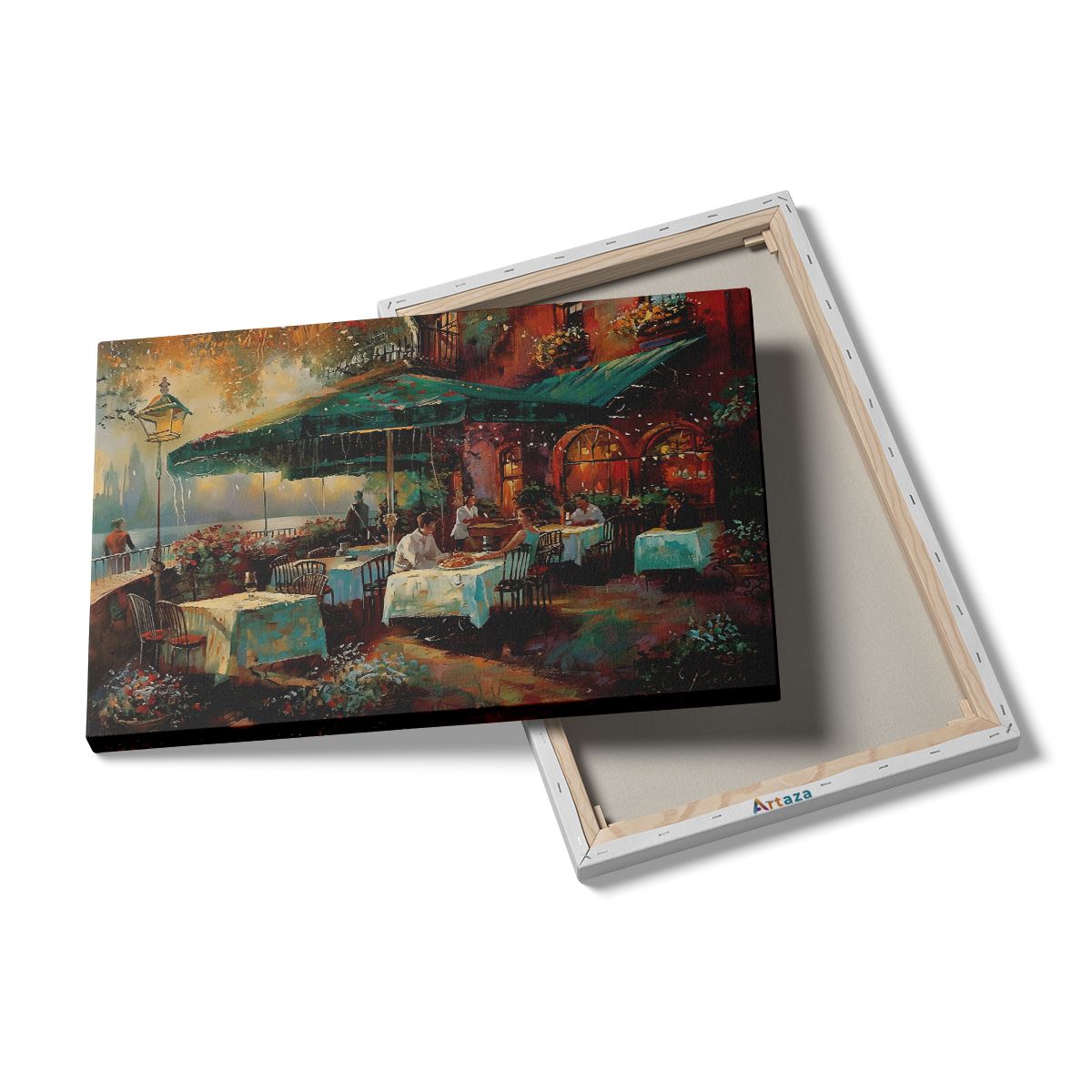 Schilderij Kunstwerk van Mensen in een Restaurant