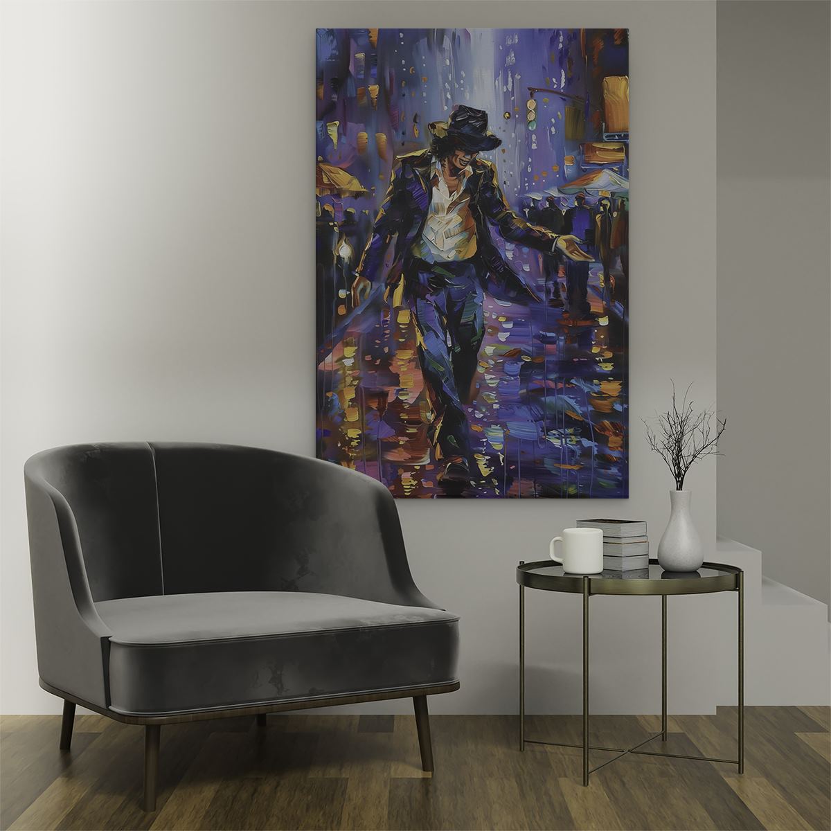 Schilderij Kunstwerk van Michael Jackson die Danst in de Regen