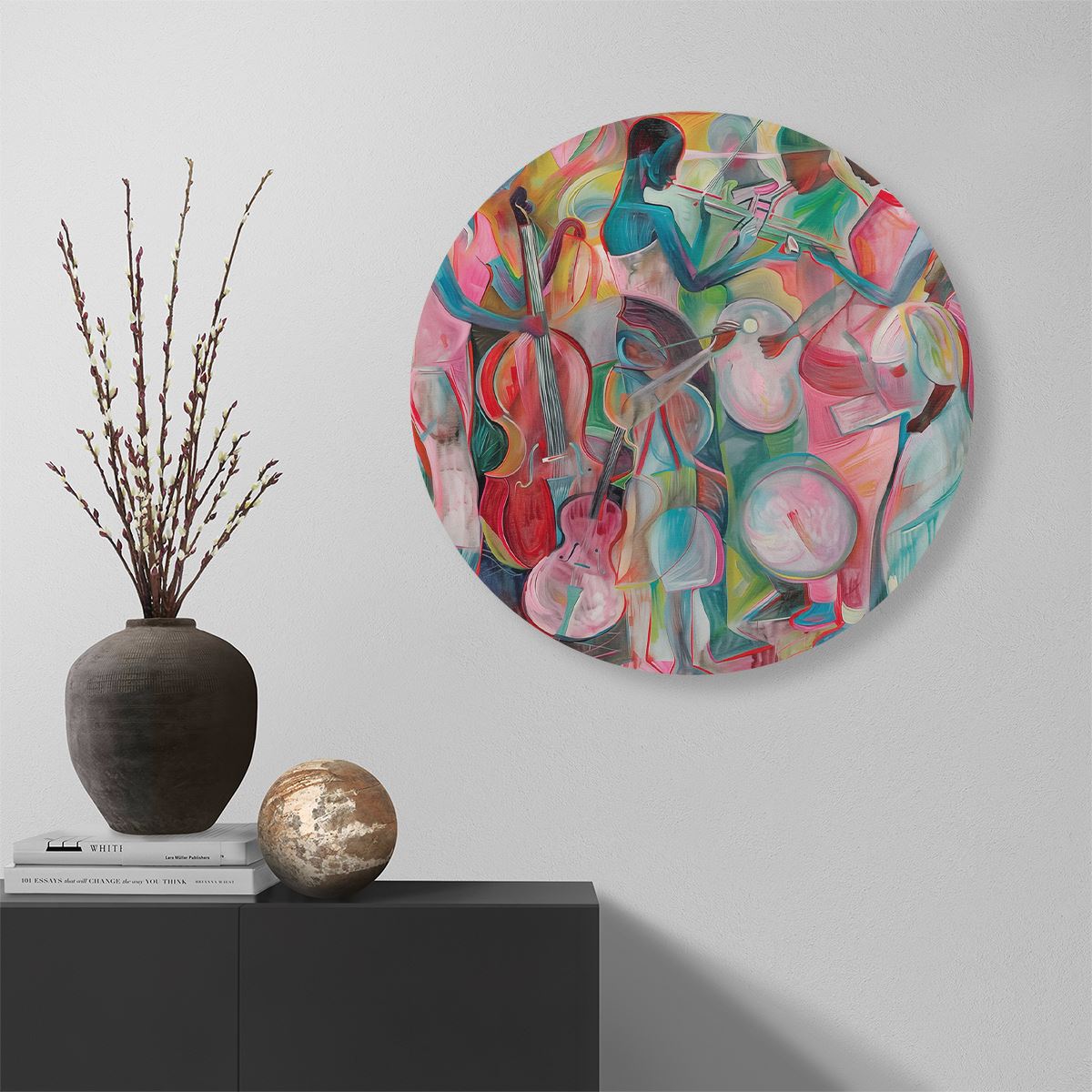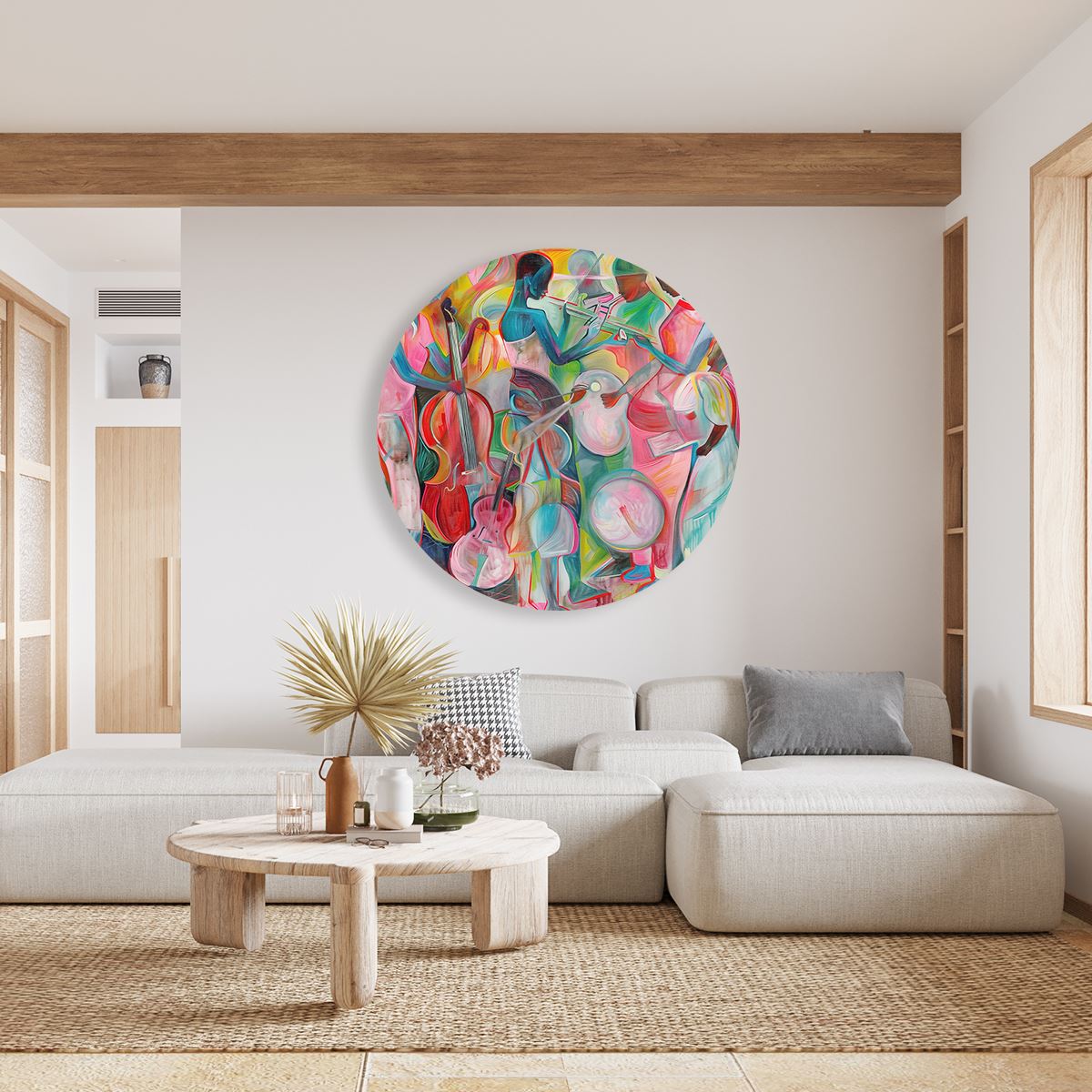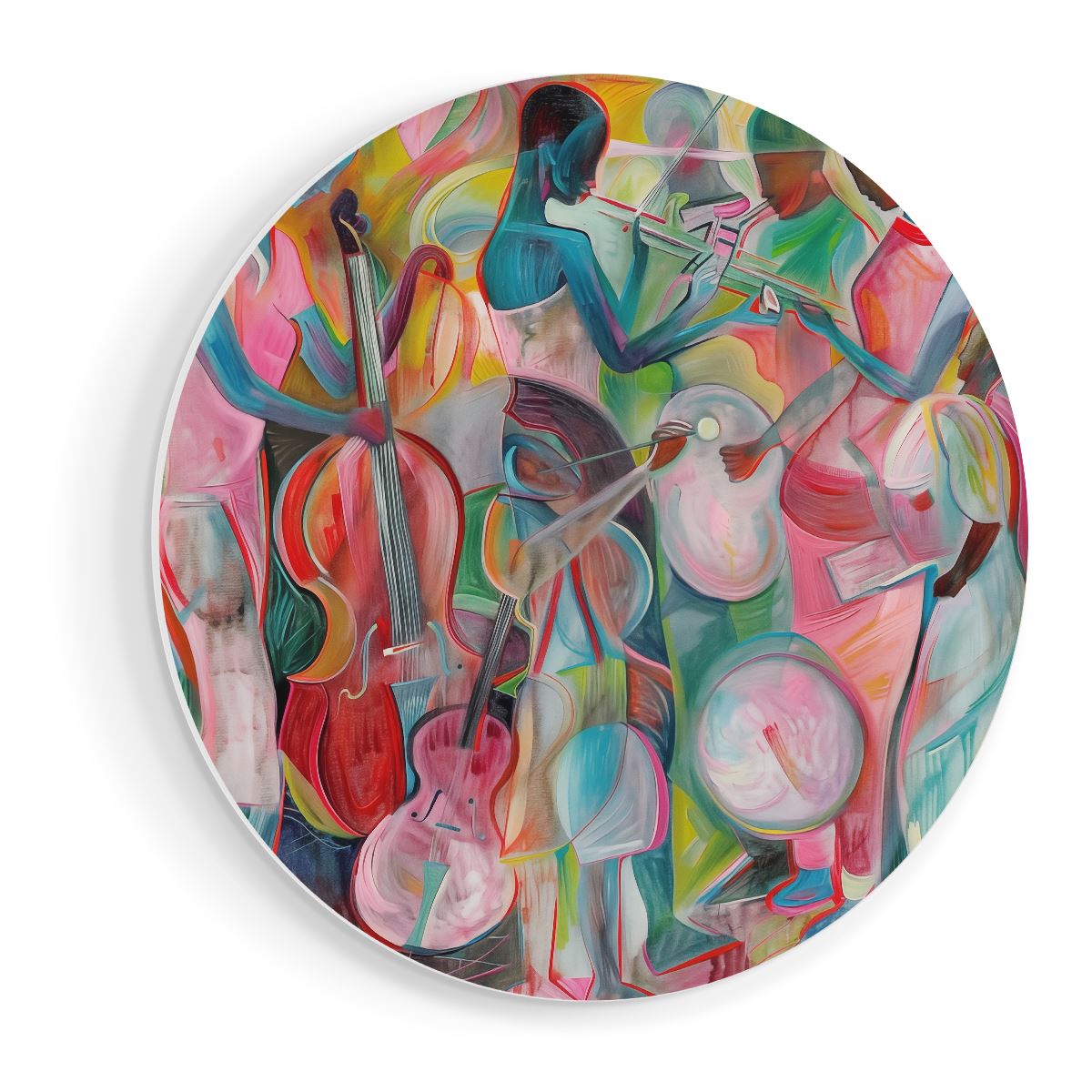 Wandcirkel Kunstwerk van Muzikanten die Instrumenten Bespelen