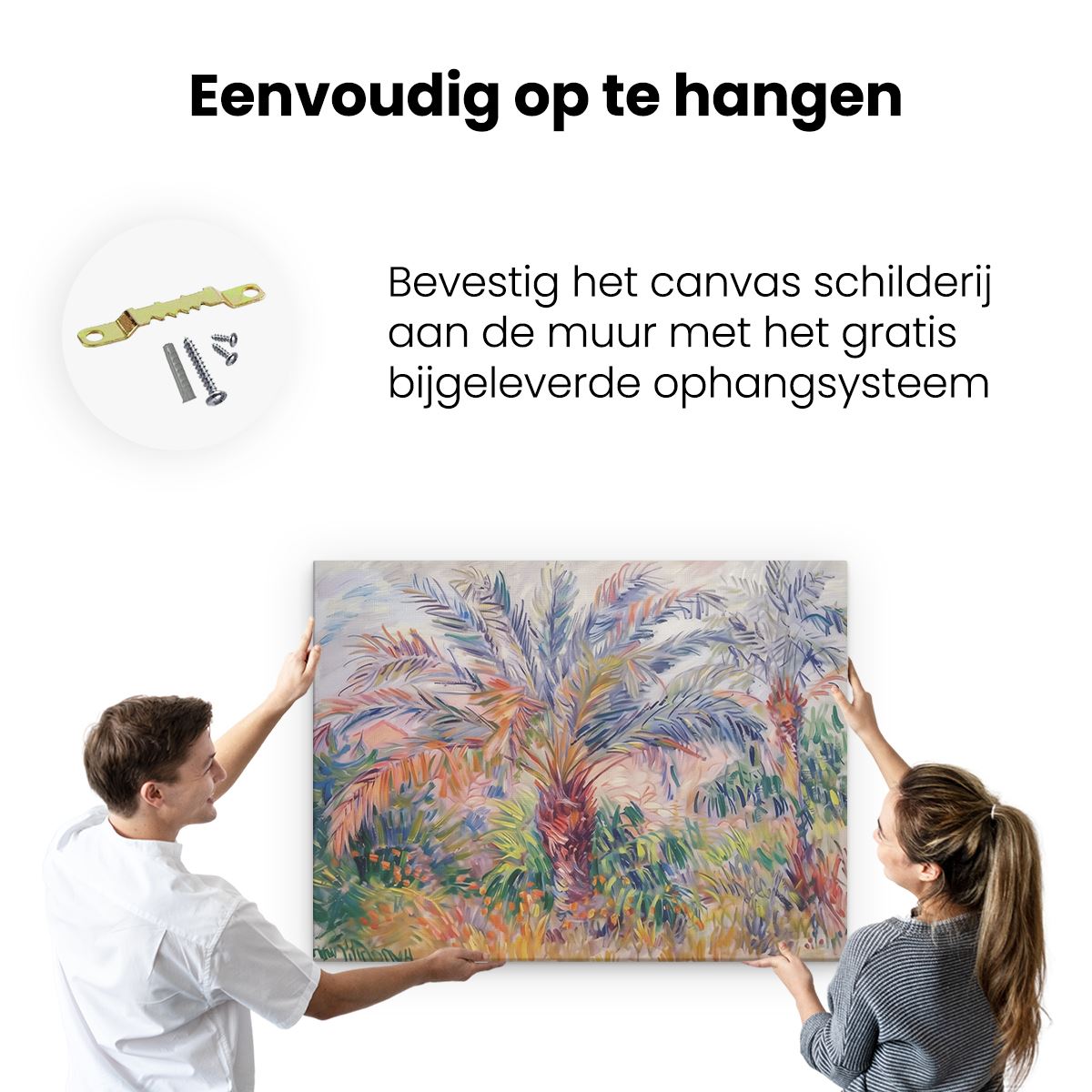 Bij aankoop ontvang je een meegeleverd ophangsysteem, zodat je op een simpele en snelle wijze het schilderij boven de bank of bed kan monteren.