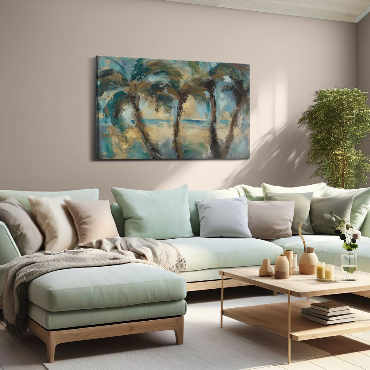 Schilderij Kunstwerk van Palmbomen op het Strand