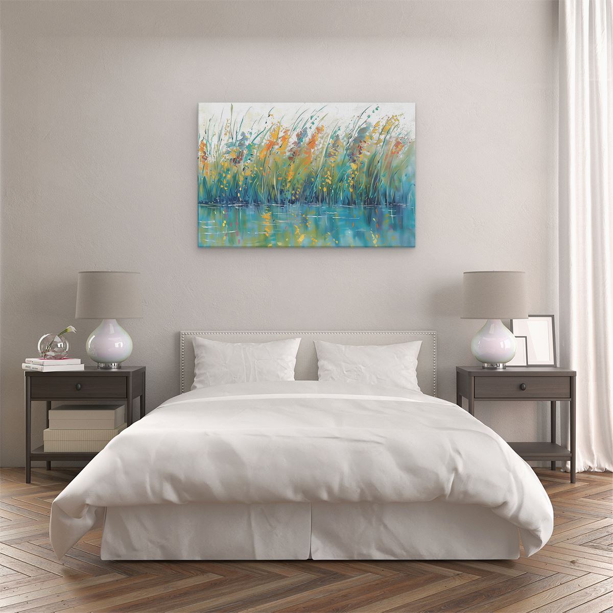 Schilderij Kunstwerk van Riet in het Water
