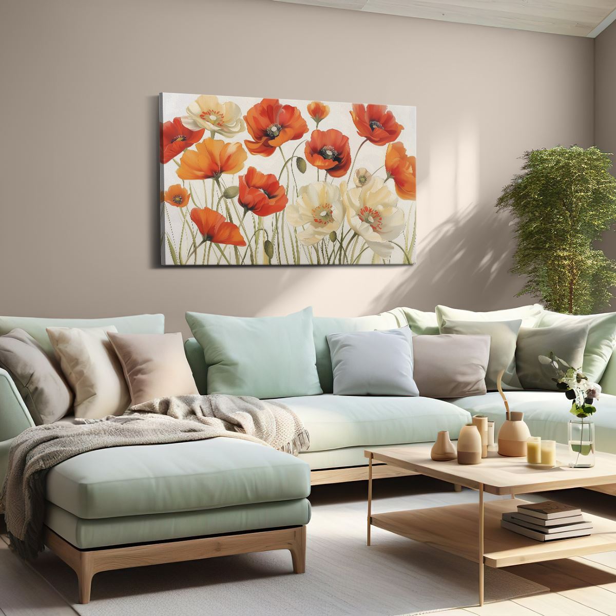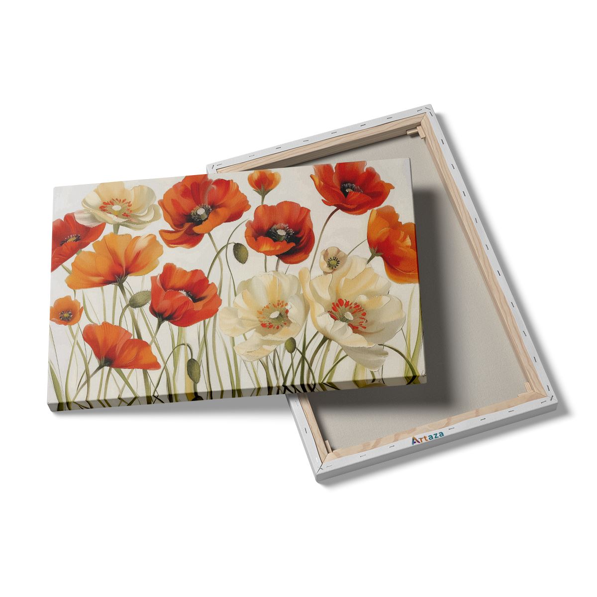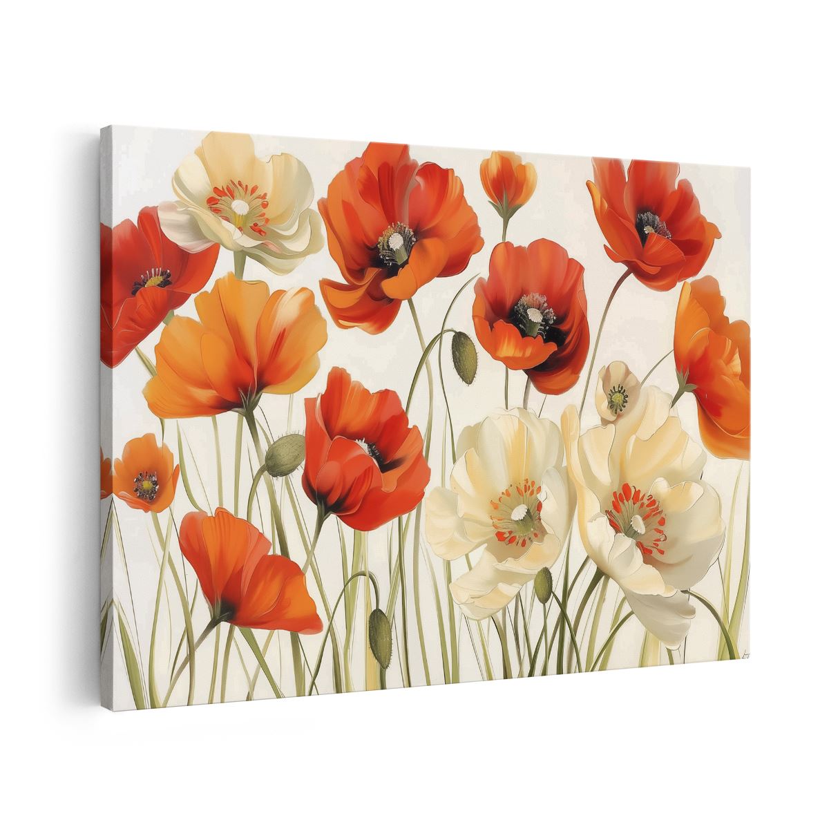 Schilderij Kunstwerk van Rode en Witte Klaprozen