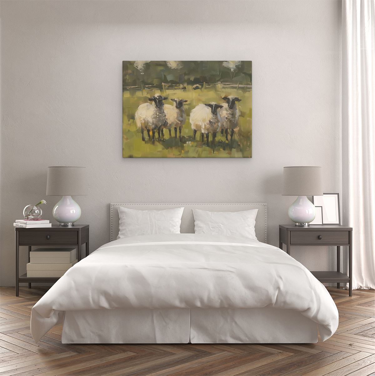 Schilderij Kunstwerk van Schapen in een Veld
