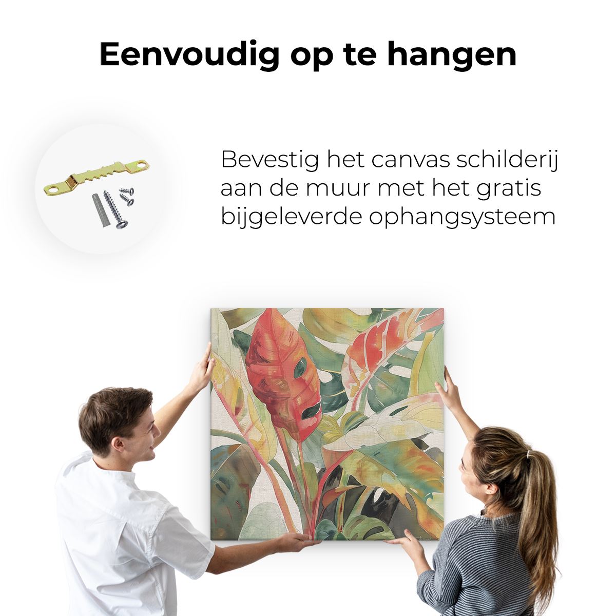 Bij aankoop ontvang je een meegeleverd ophangsysteem, zodat je op een simpele en snelle wijze het schilderij boven de bank of bed kan monteren.