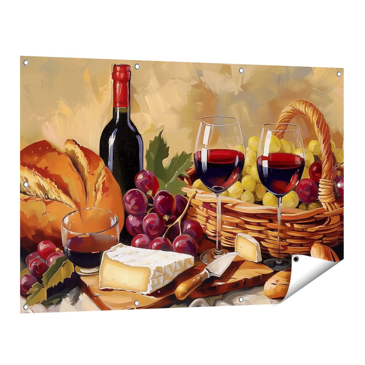 Tuinposter Kunstwerk van Wijn, Brood en Kaas