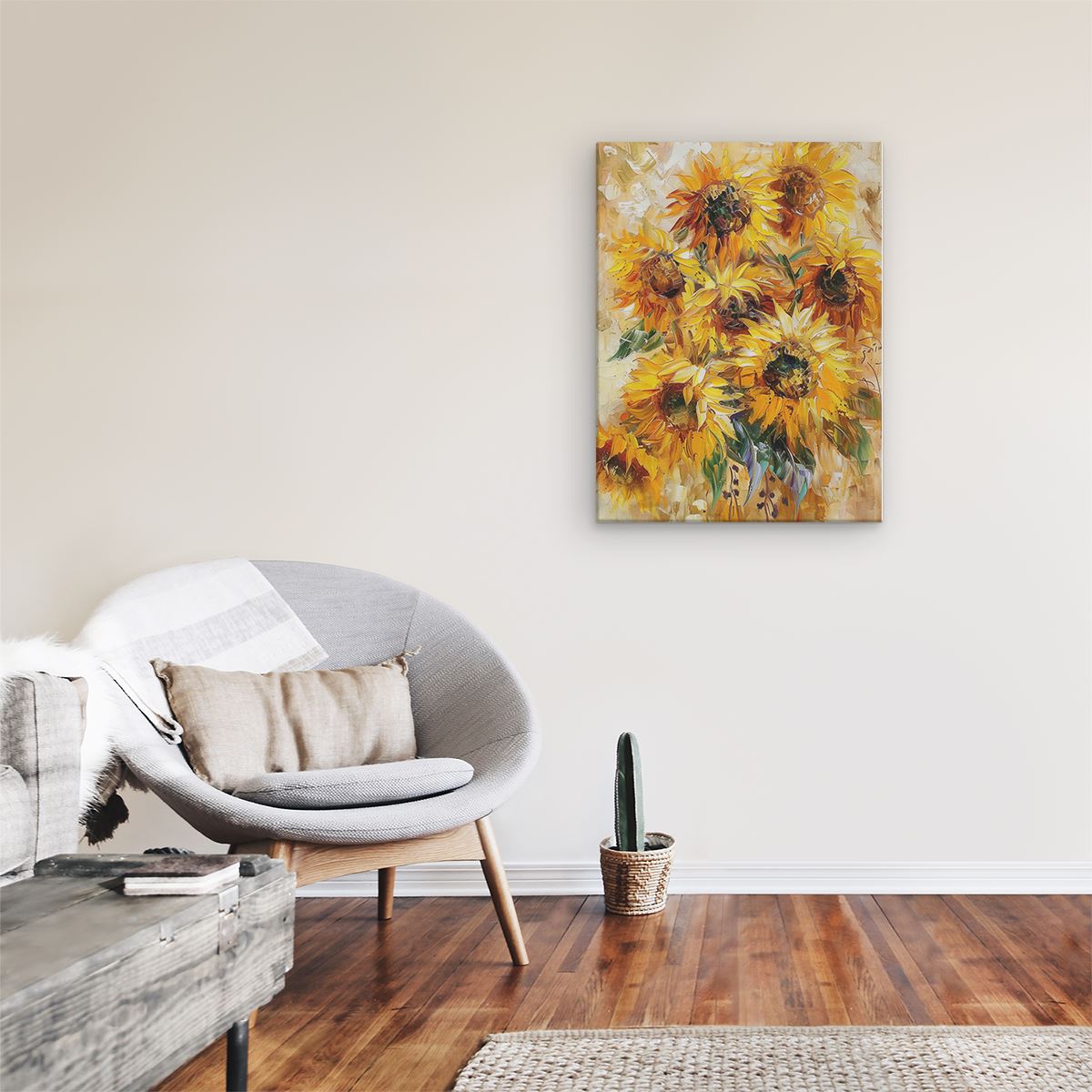 Schilderij Kunstwerk van Zonnebloemen in een Vaas