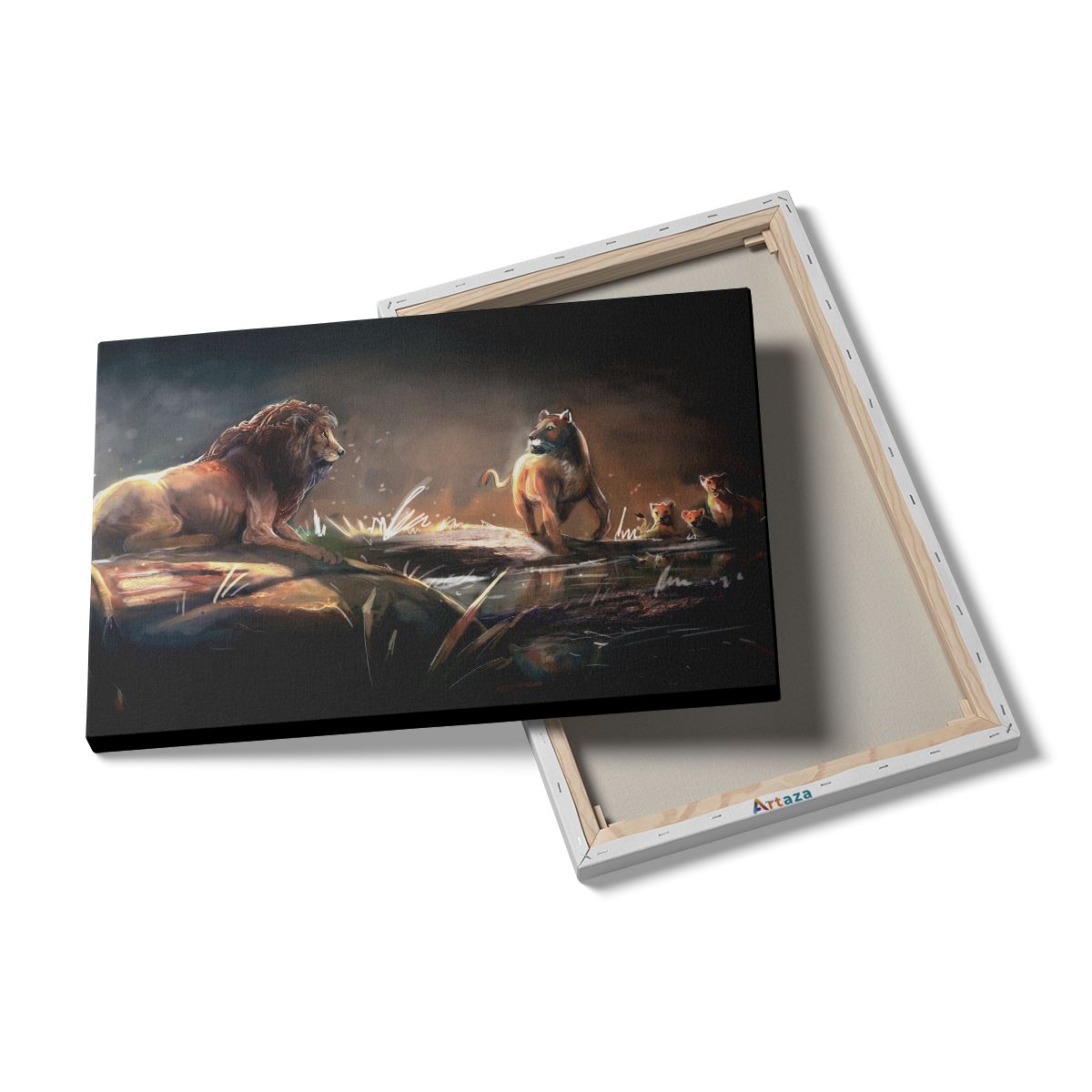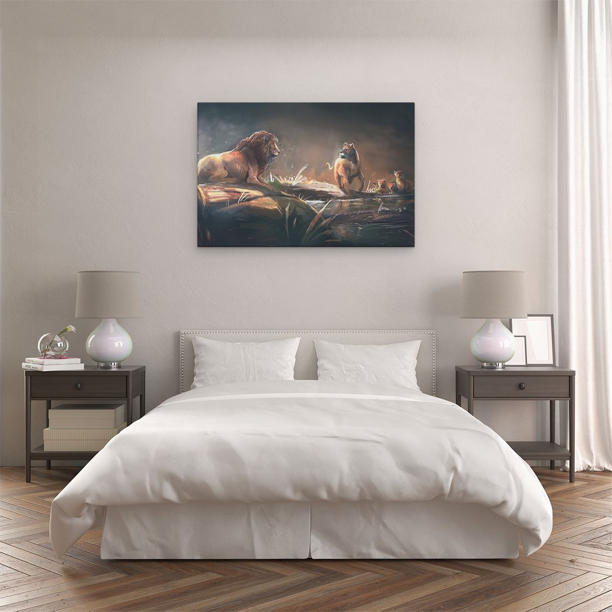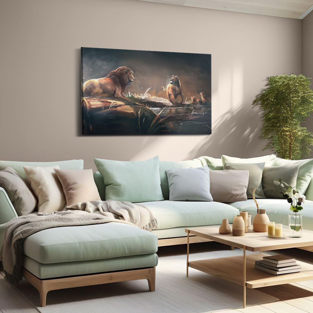 Schilderij Leeuwen Familie in het Wild - Getekend