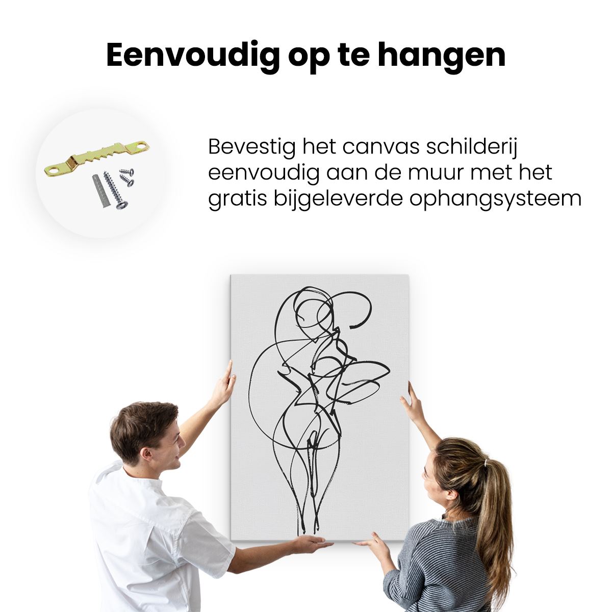 Bij aankoop ontvang je een meegeleverd ophangsysteem, zodat je op een simpele en snelle wijze het schilderij boven de bank of bed kan monteren.