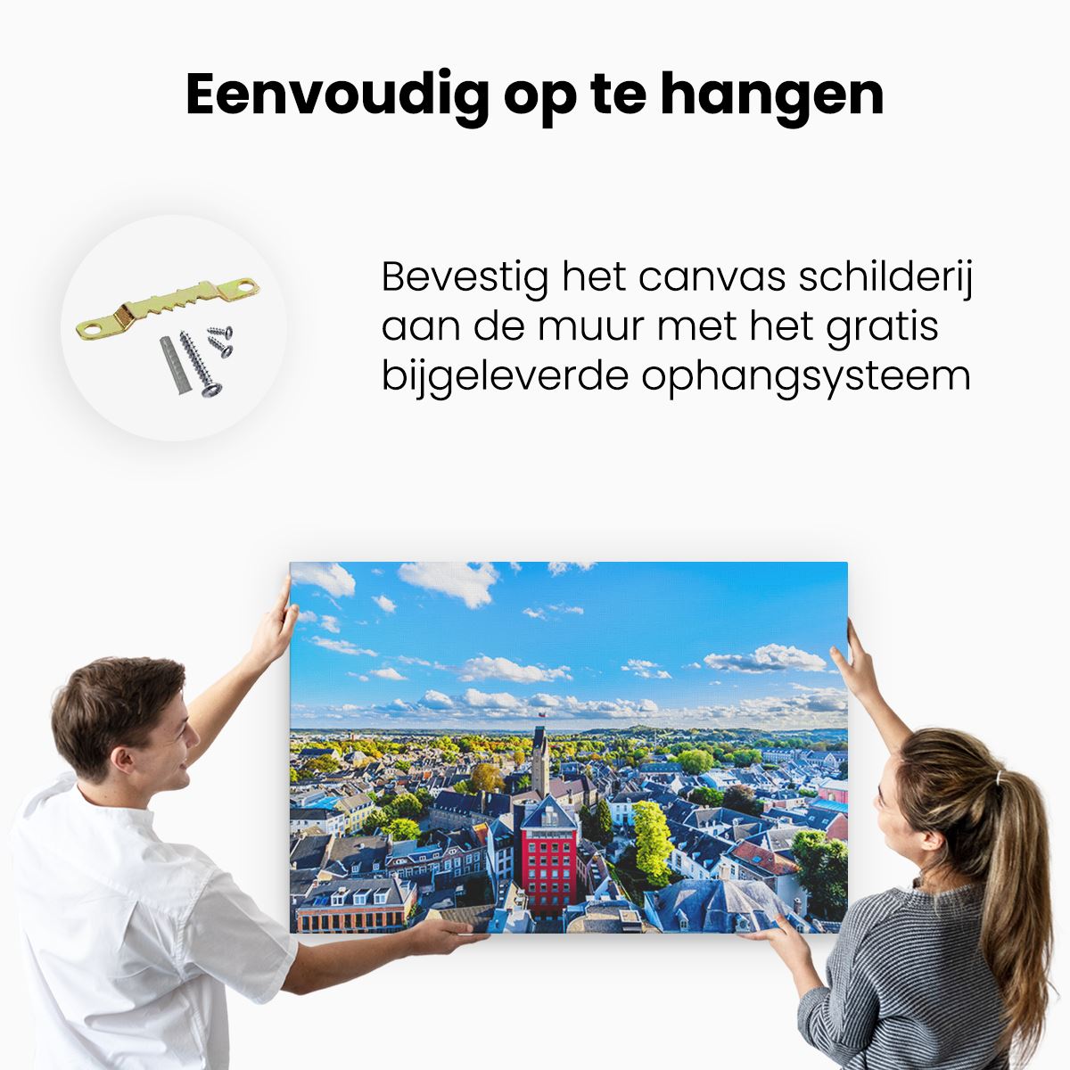 Bij aankoop ontvang je een meegeleverd ophangsysteem, zodat je op een simpele en snelle wijze het schilderij boven de bank of bed kan monteren.