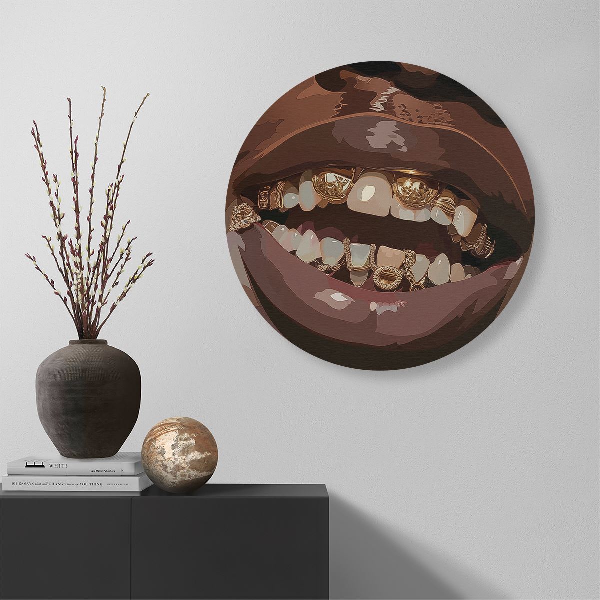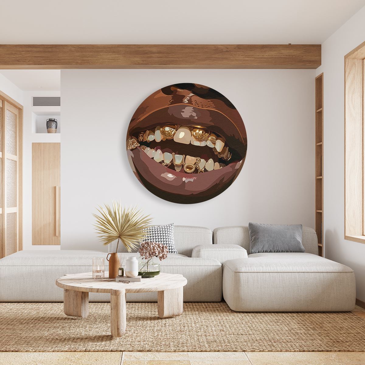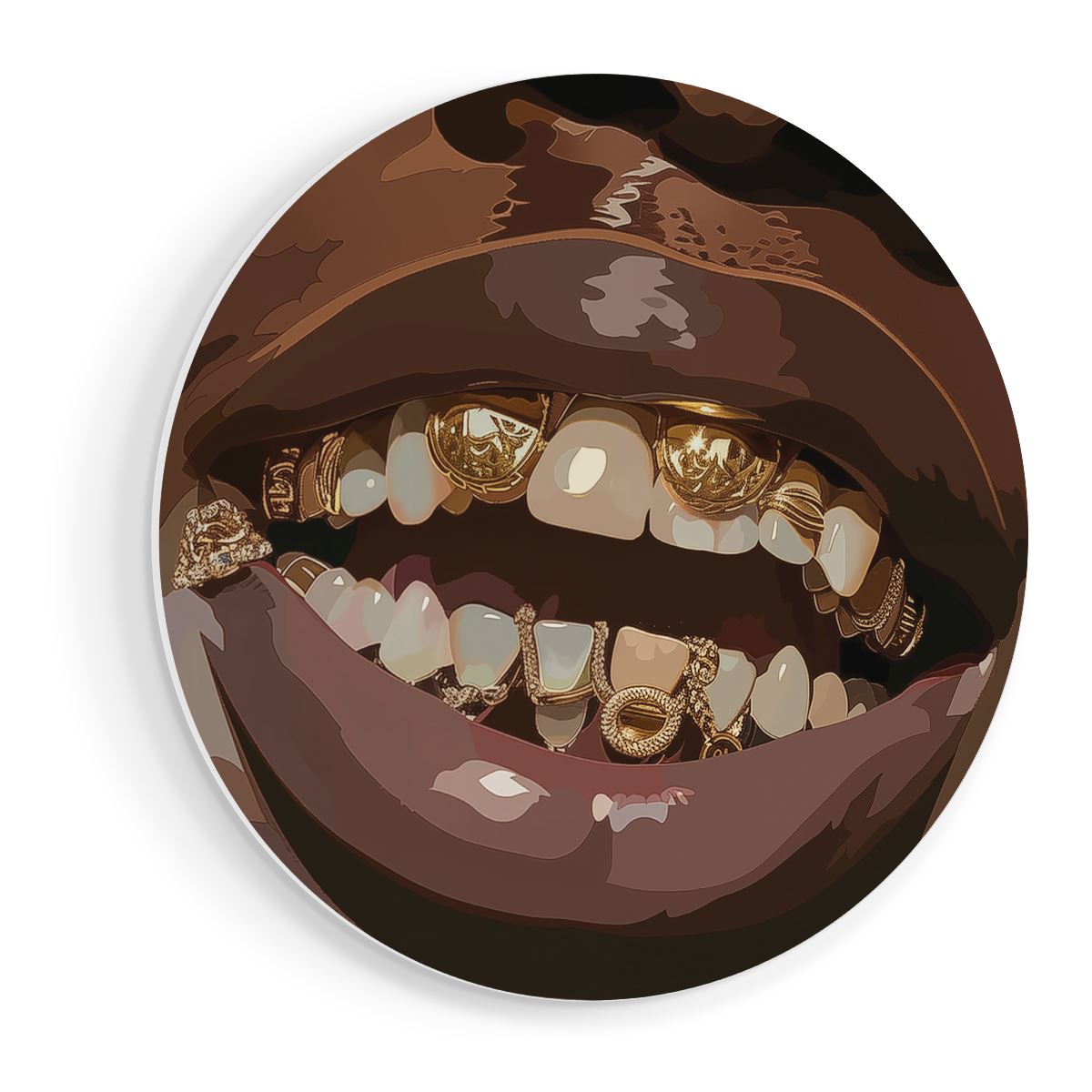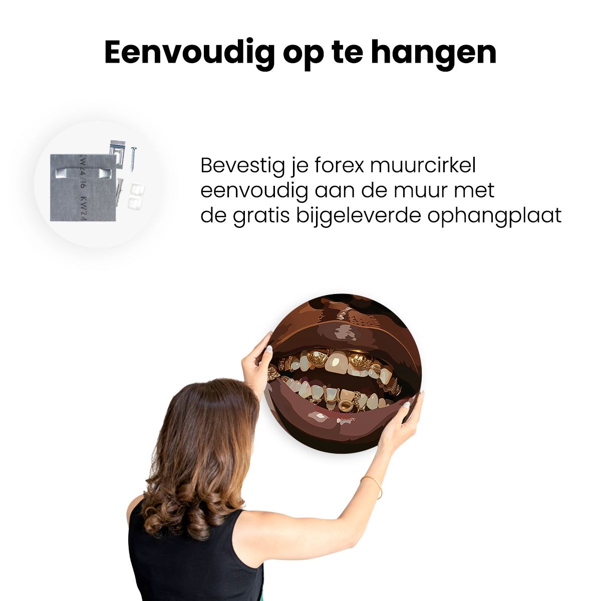 Wandcirkel Man die Lacht met Gouden Beugels op zijn Tanden