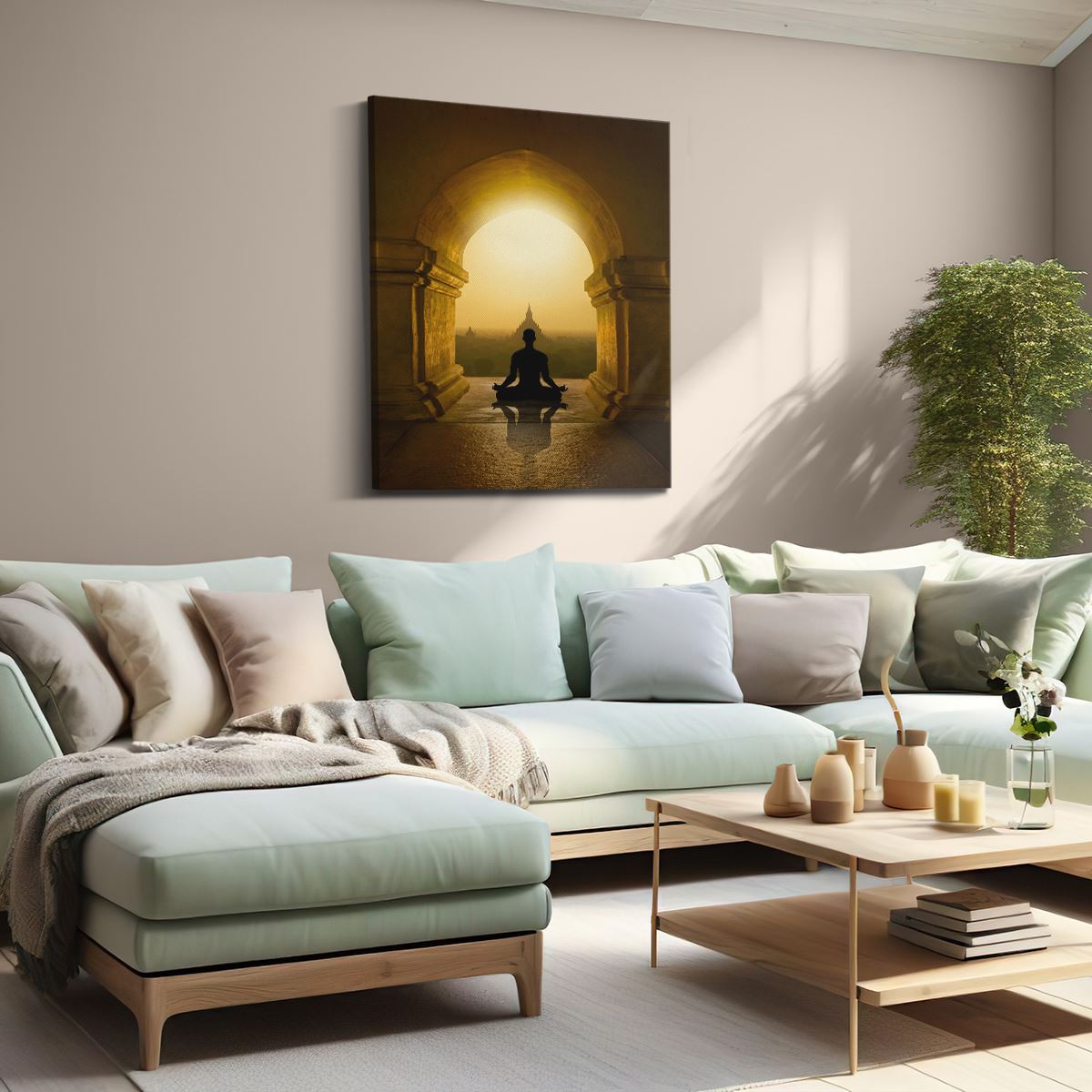 Schilderij Man Doet Yoga In Een Boeddha Tempel