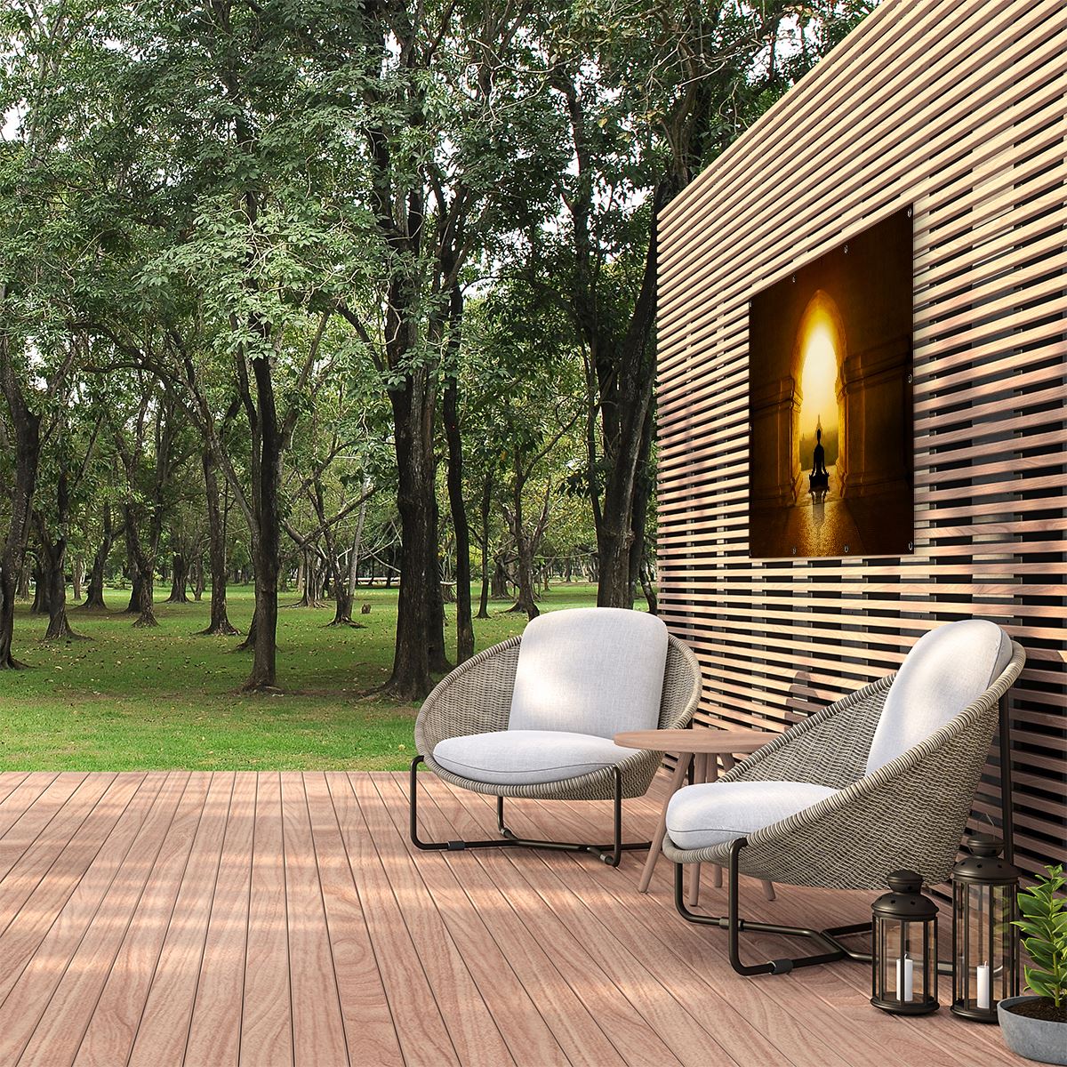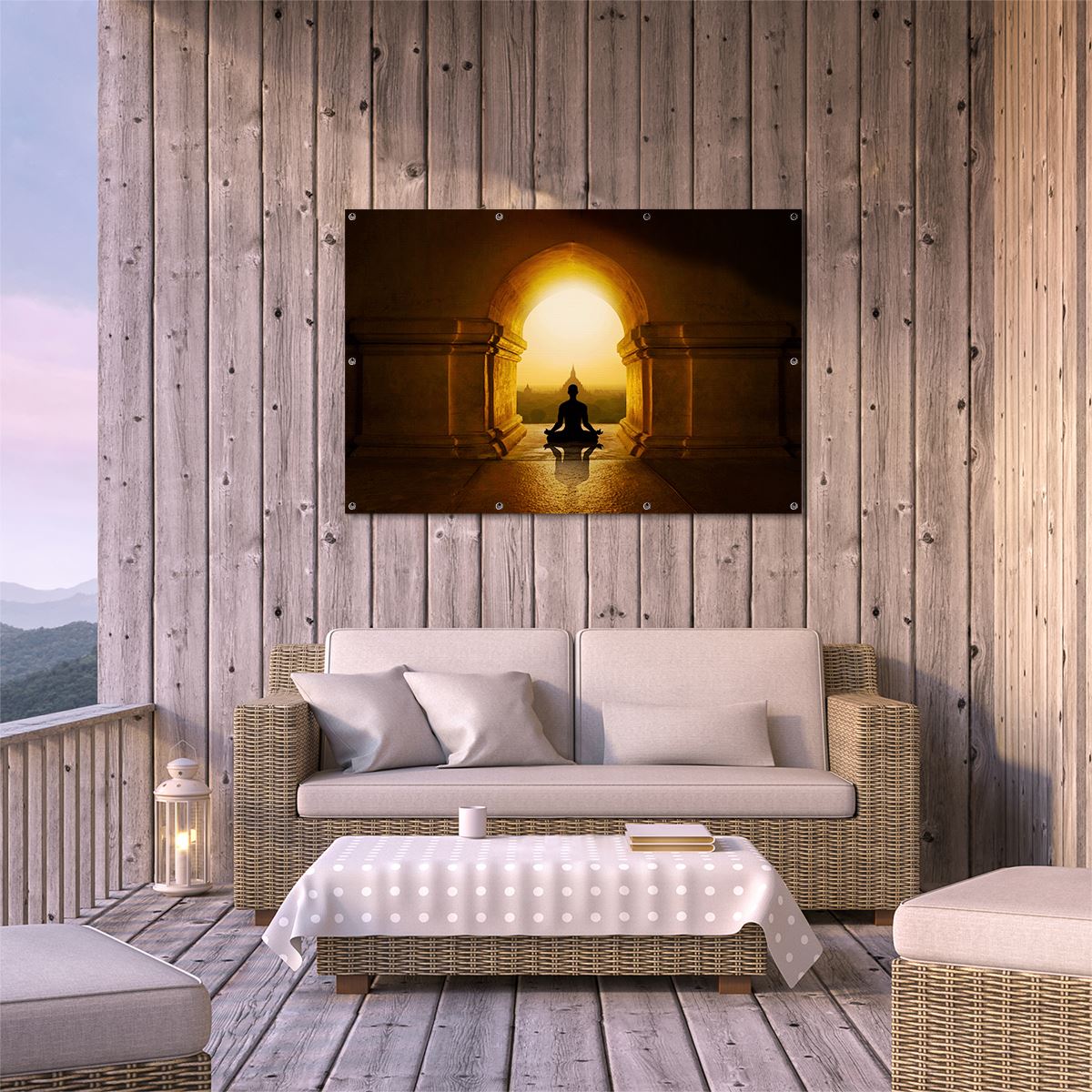 Tuinposter Man Doet Yoga In Een Boeddha Tempel