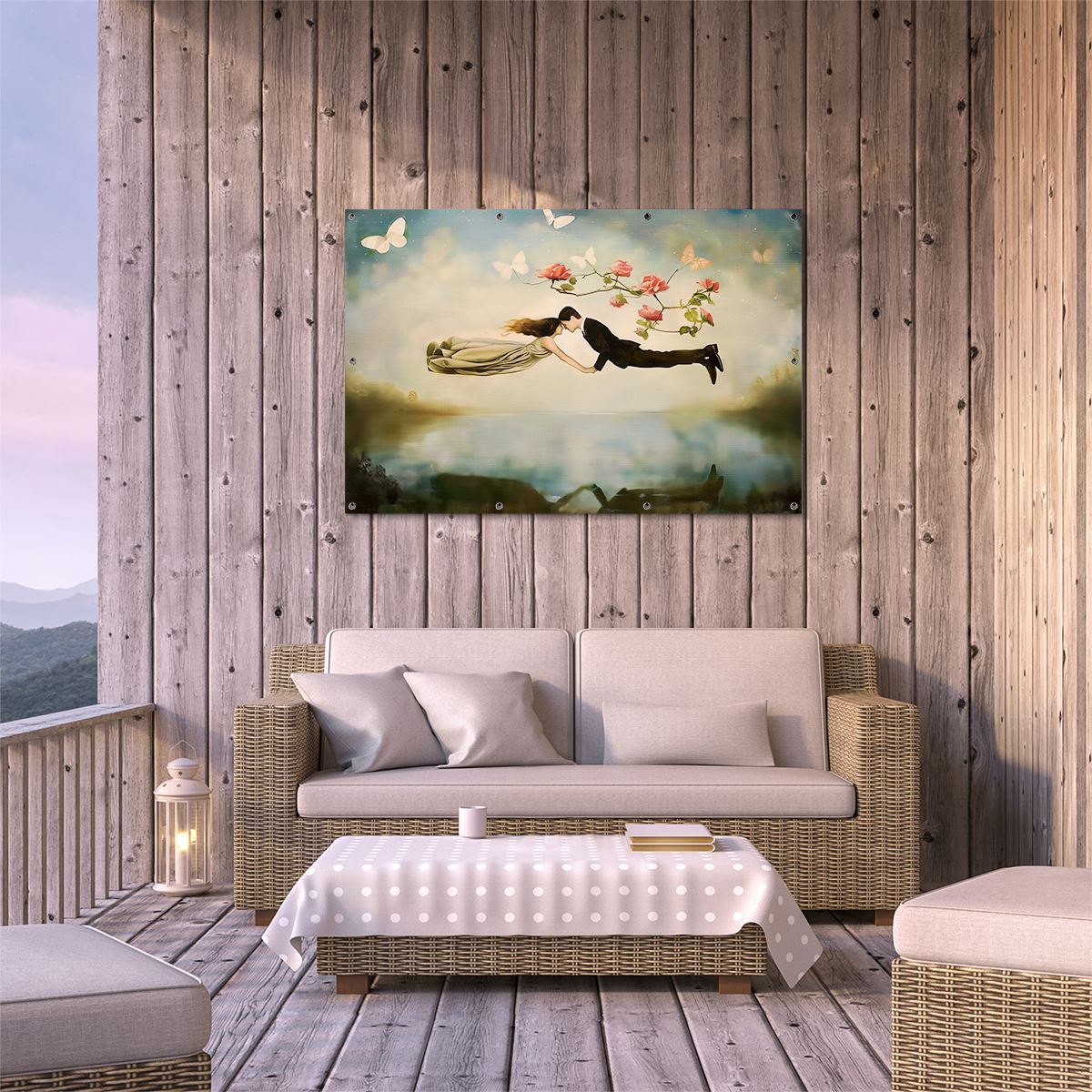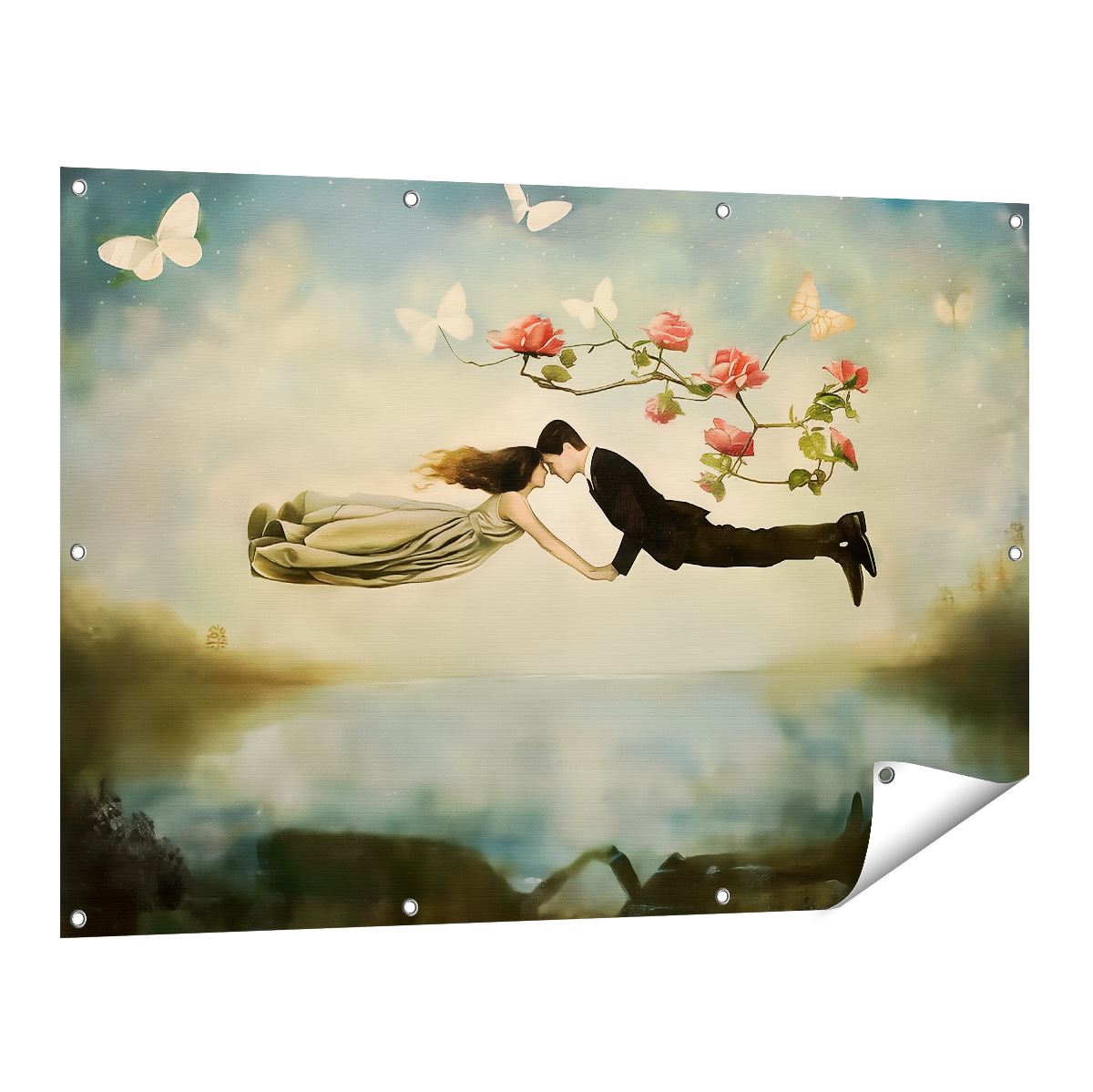 Tuinposter Man en een Vrouw Vliegen in de Lucht