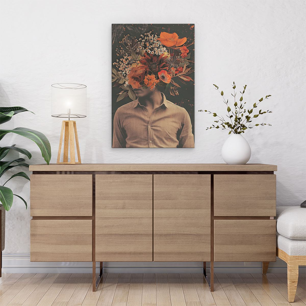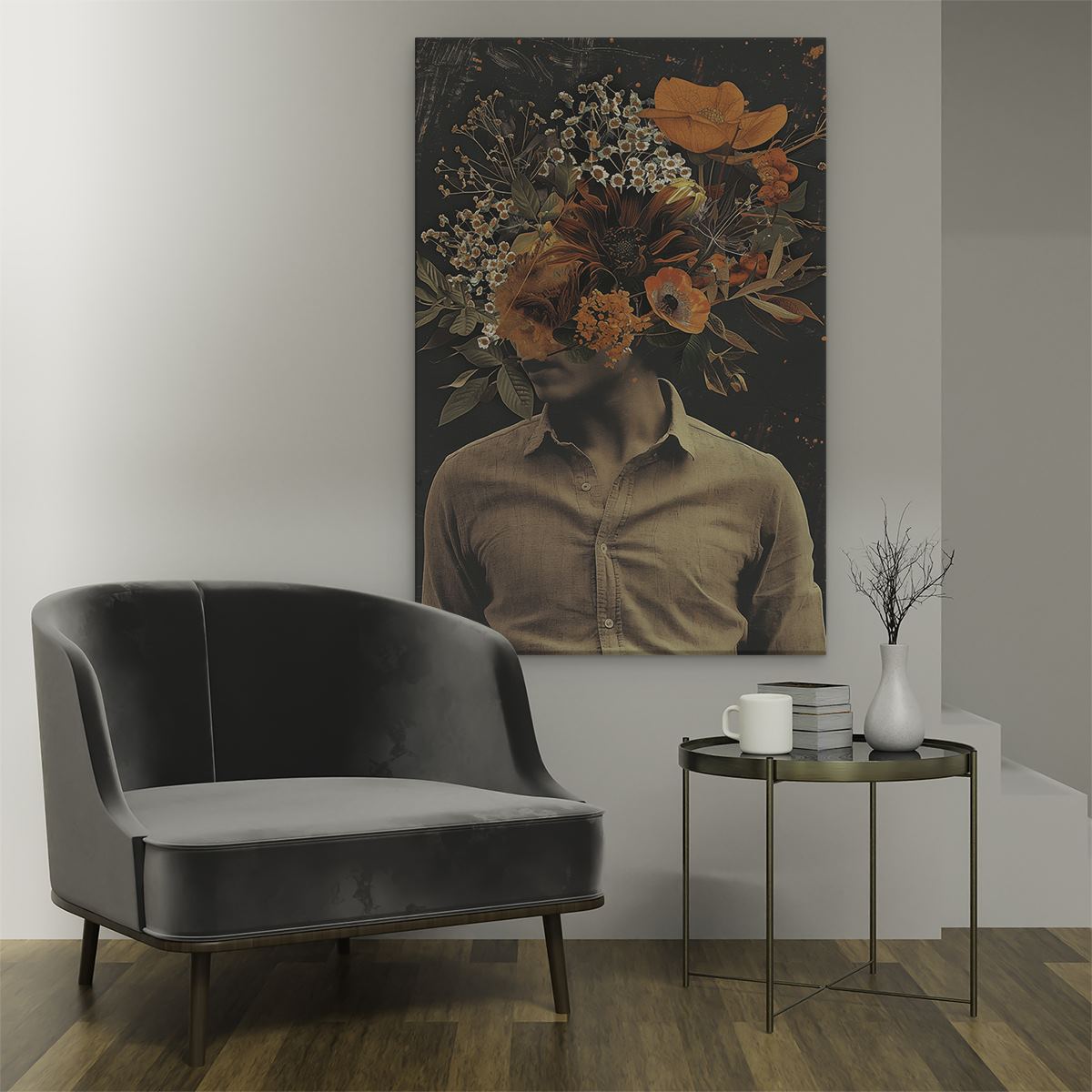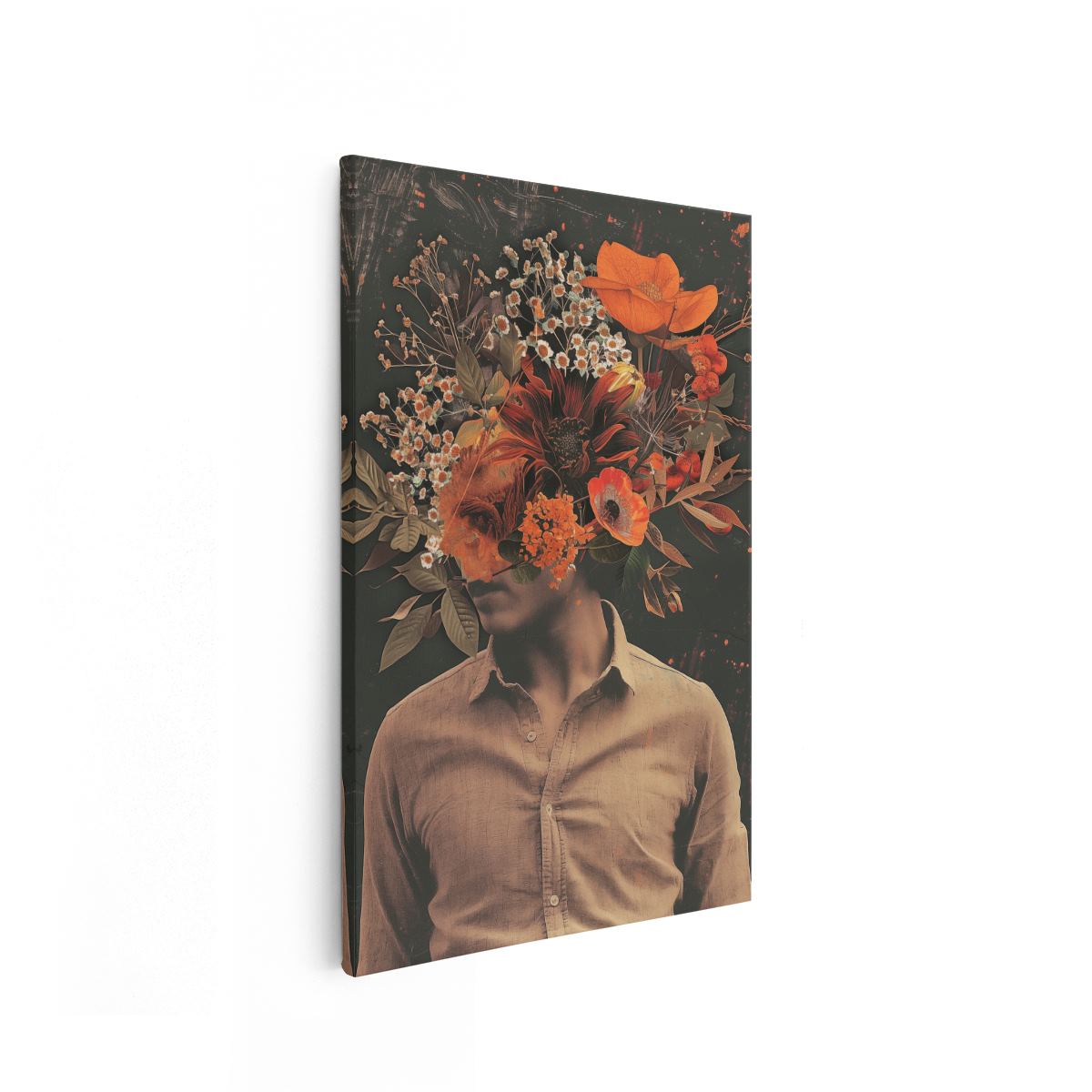 Schilderij Man met Bloemen op zijn Hoofd