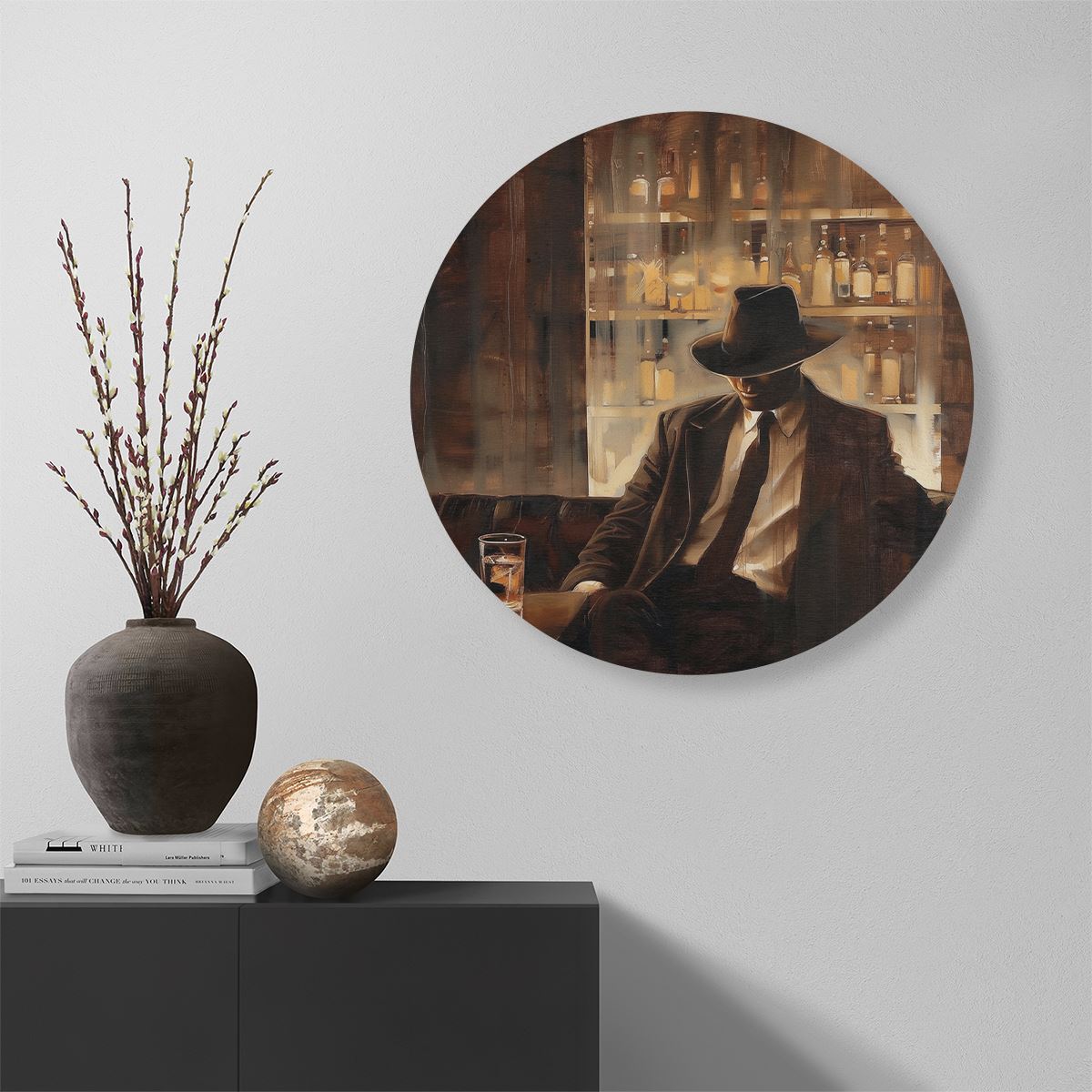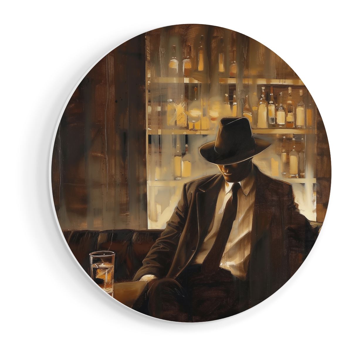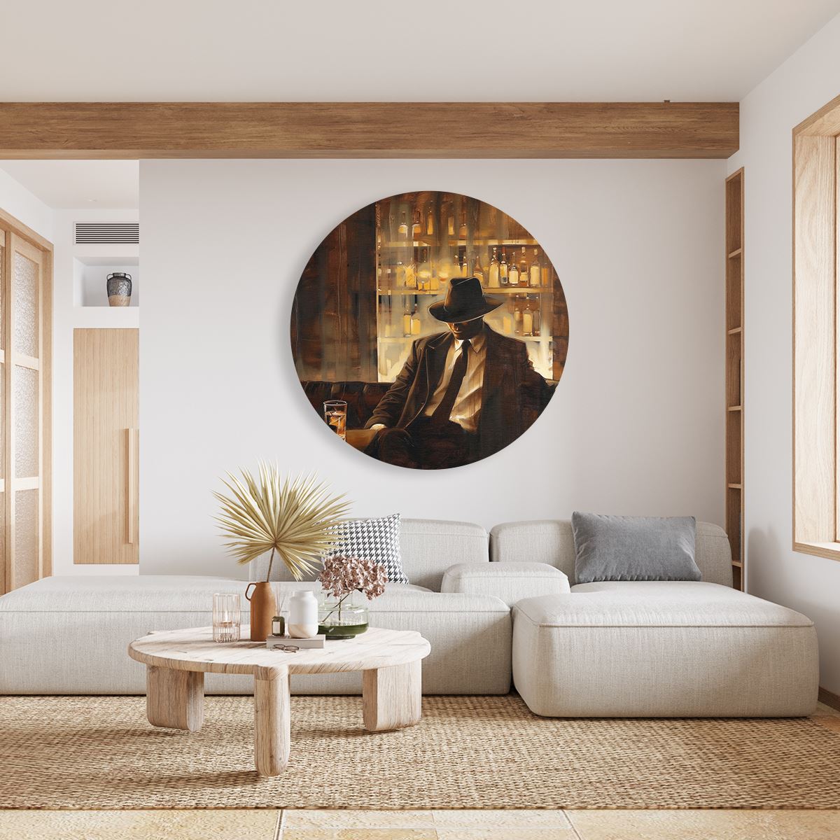 Wandcirkel Man met een Hoed Zittend op een Bank