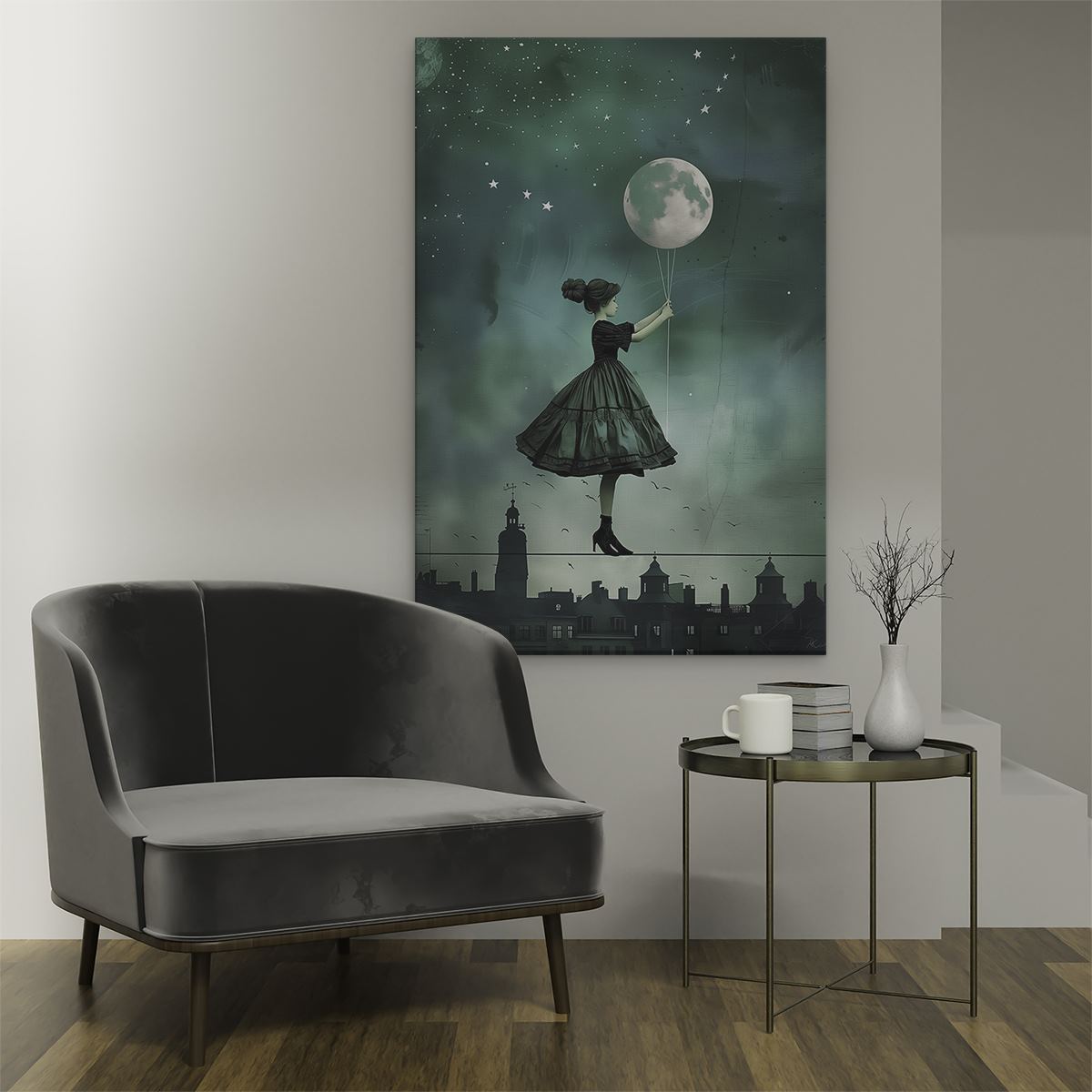 Schilderij Meisje in een Jurk met een Ballon