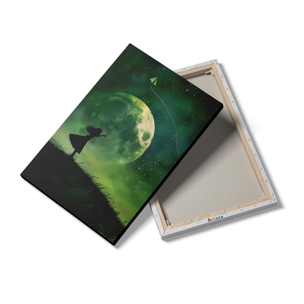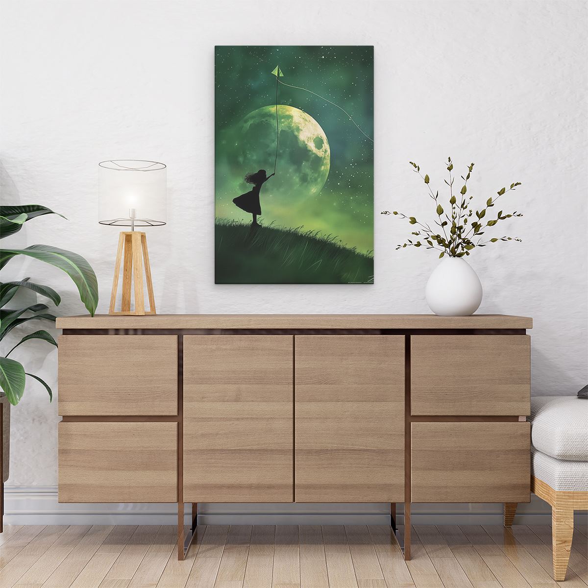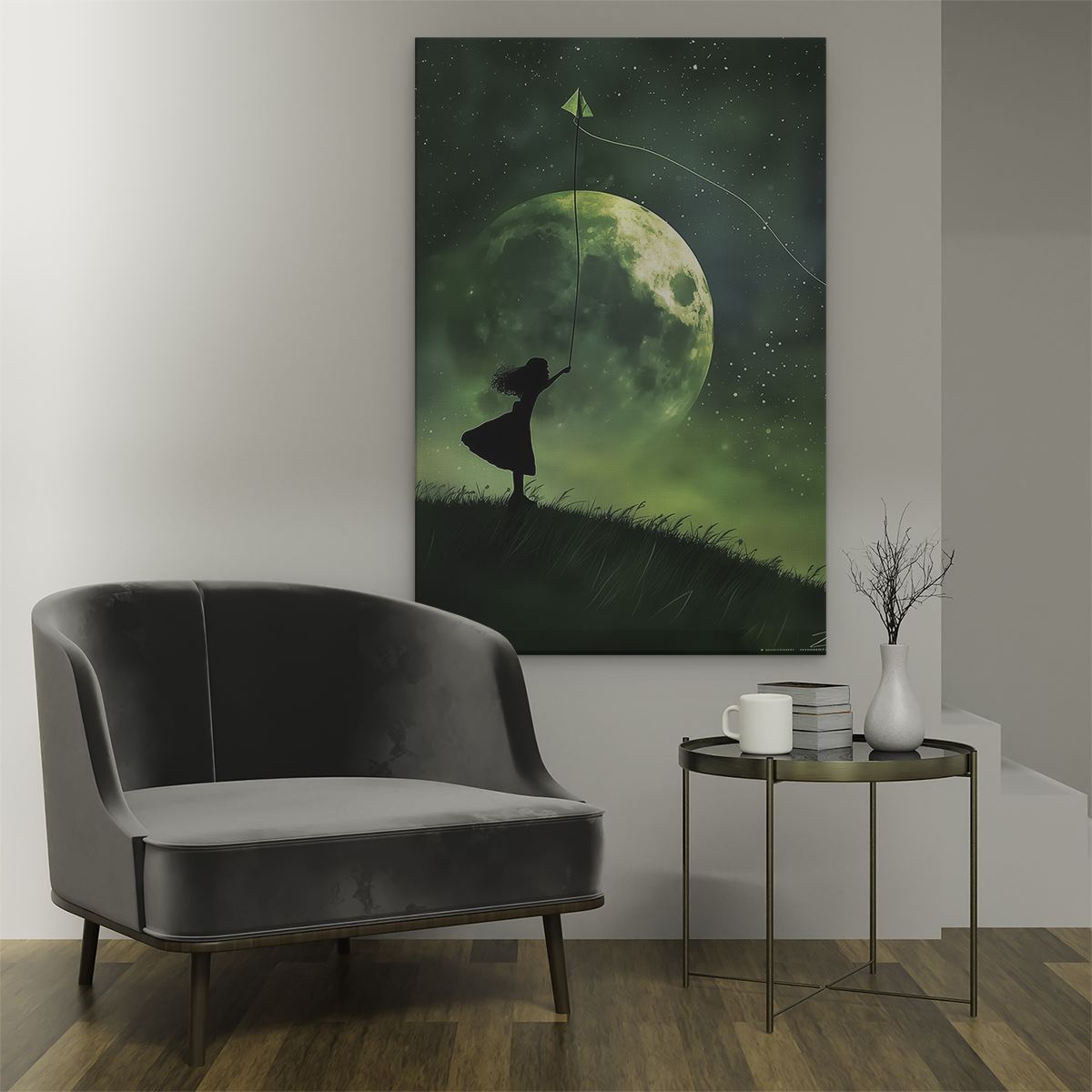 Schilderij Meisje Vliegeren in de Nachtelijke Hemel