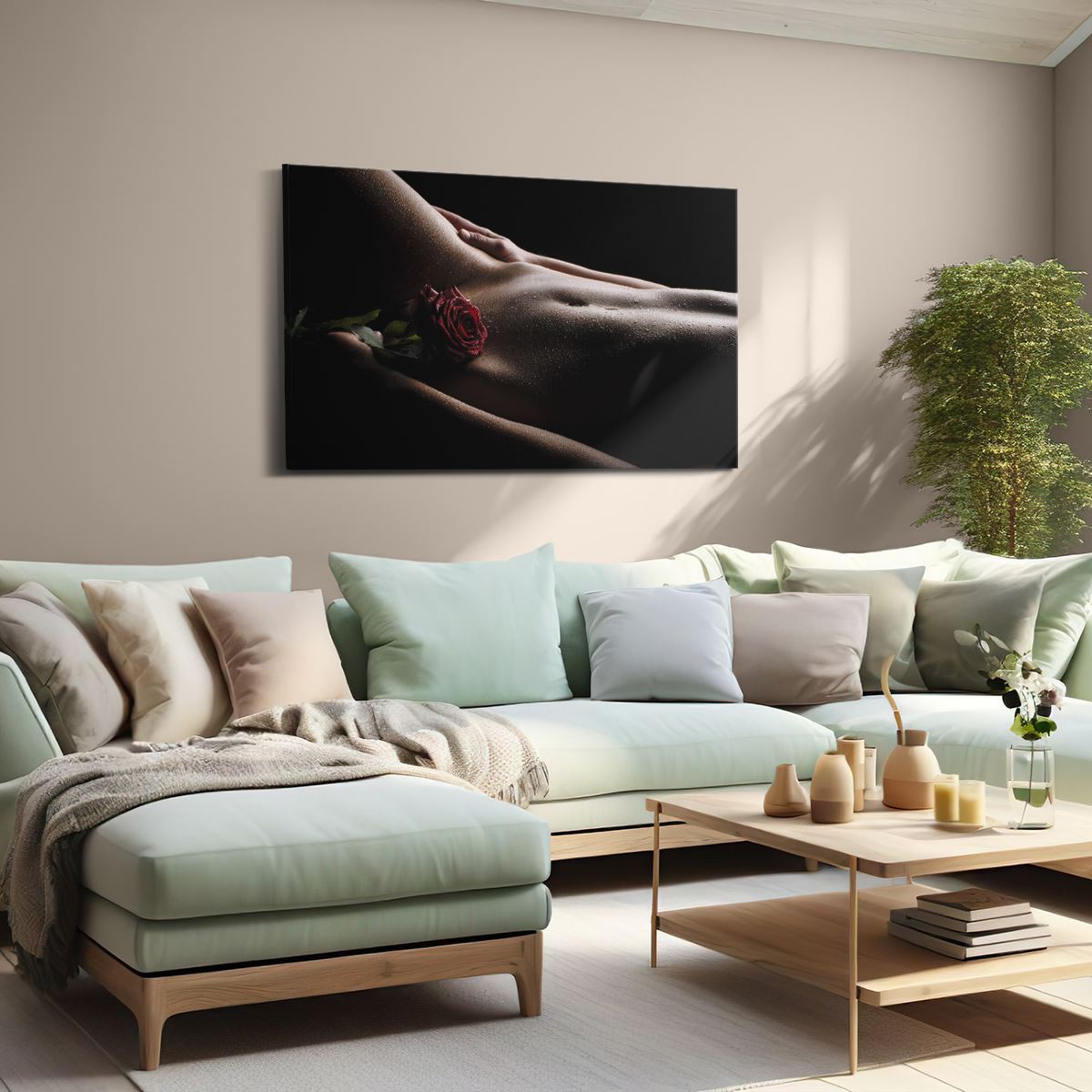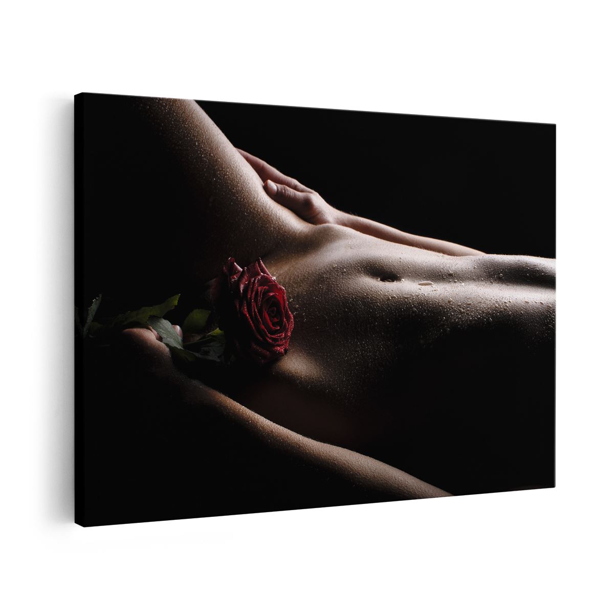 Schilderij Naakte Vrouwenlichaam met een Rode Roos - Erotiek