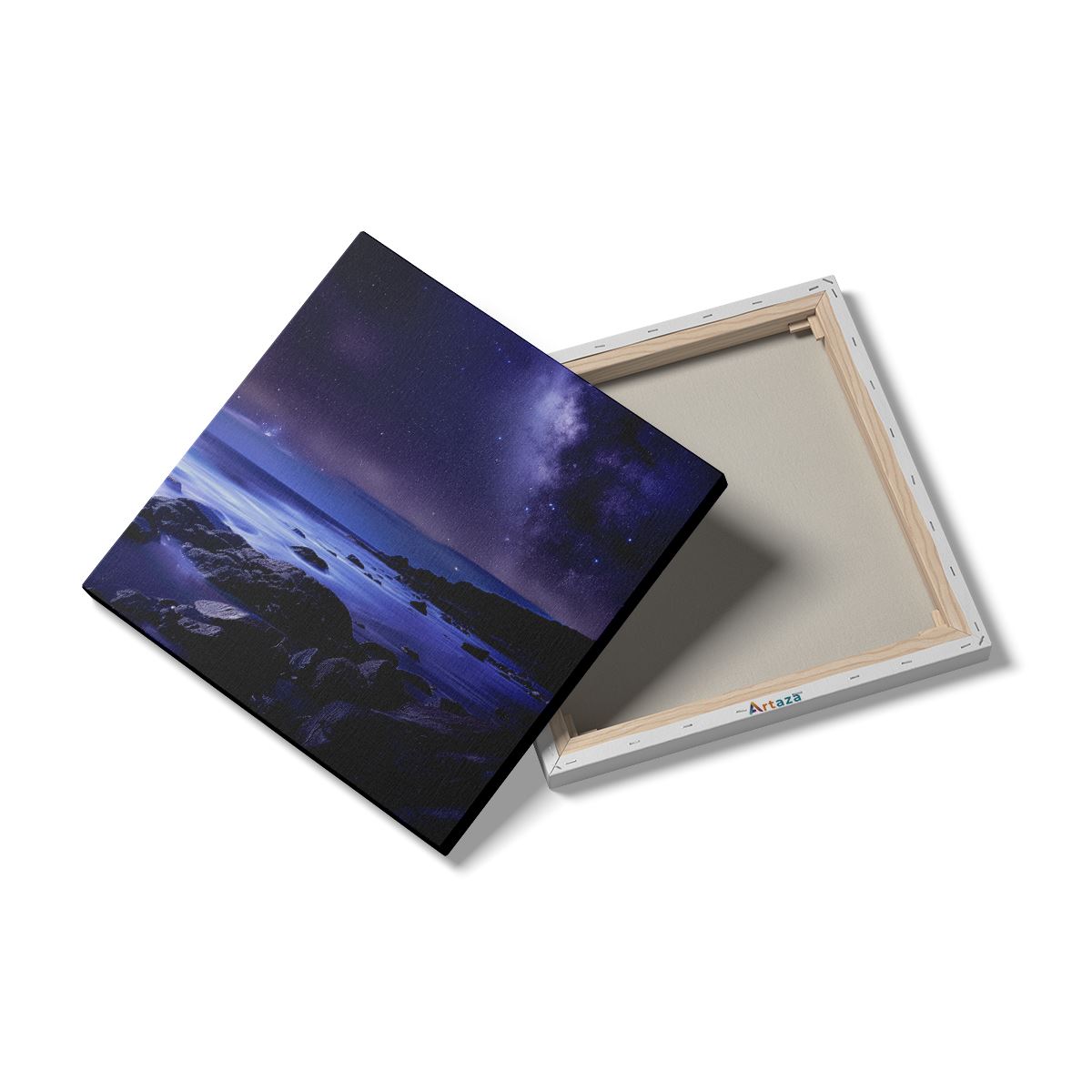 Schilderij Nachtelijke Hemel met Sterren en een Rotsachtig Strand