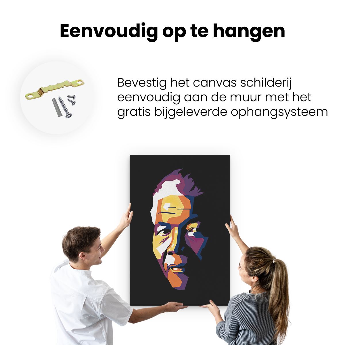 Bij aankoop ontvang je een meegeleverd ophangsysteem, zodat je op een simpele en snelle wijze het schilderij boven de bank of bed kan monteren.