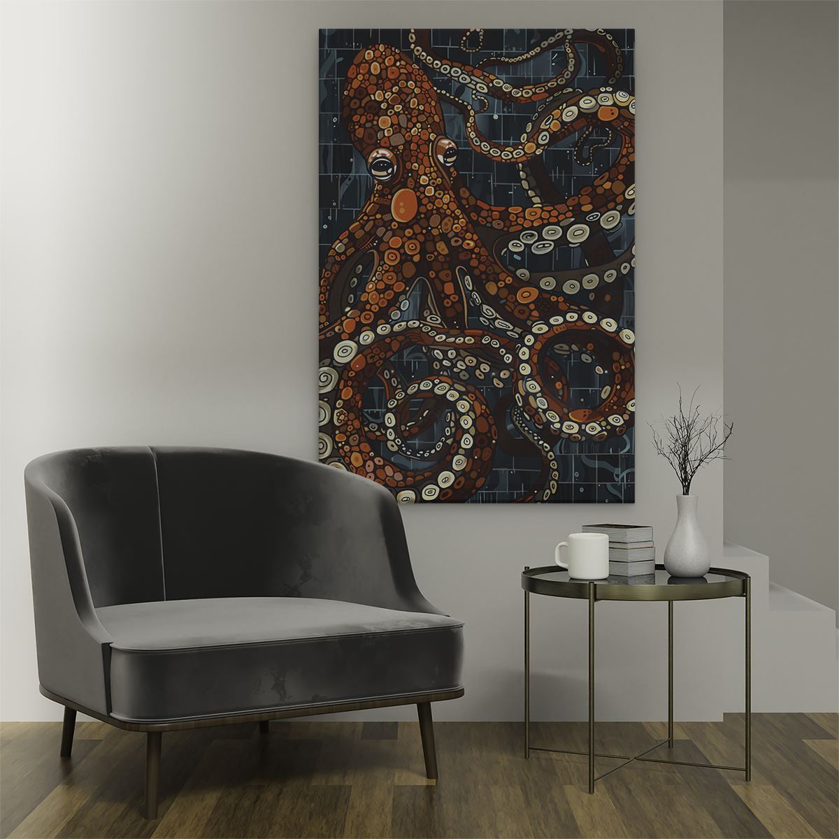 Schilderij Octopus met veel Tentakels