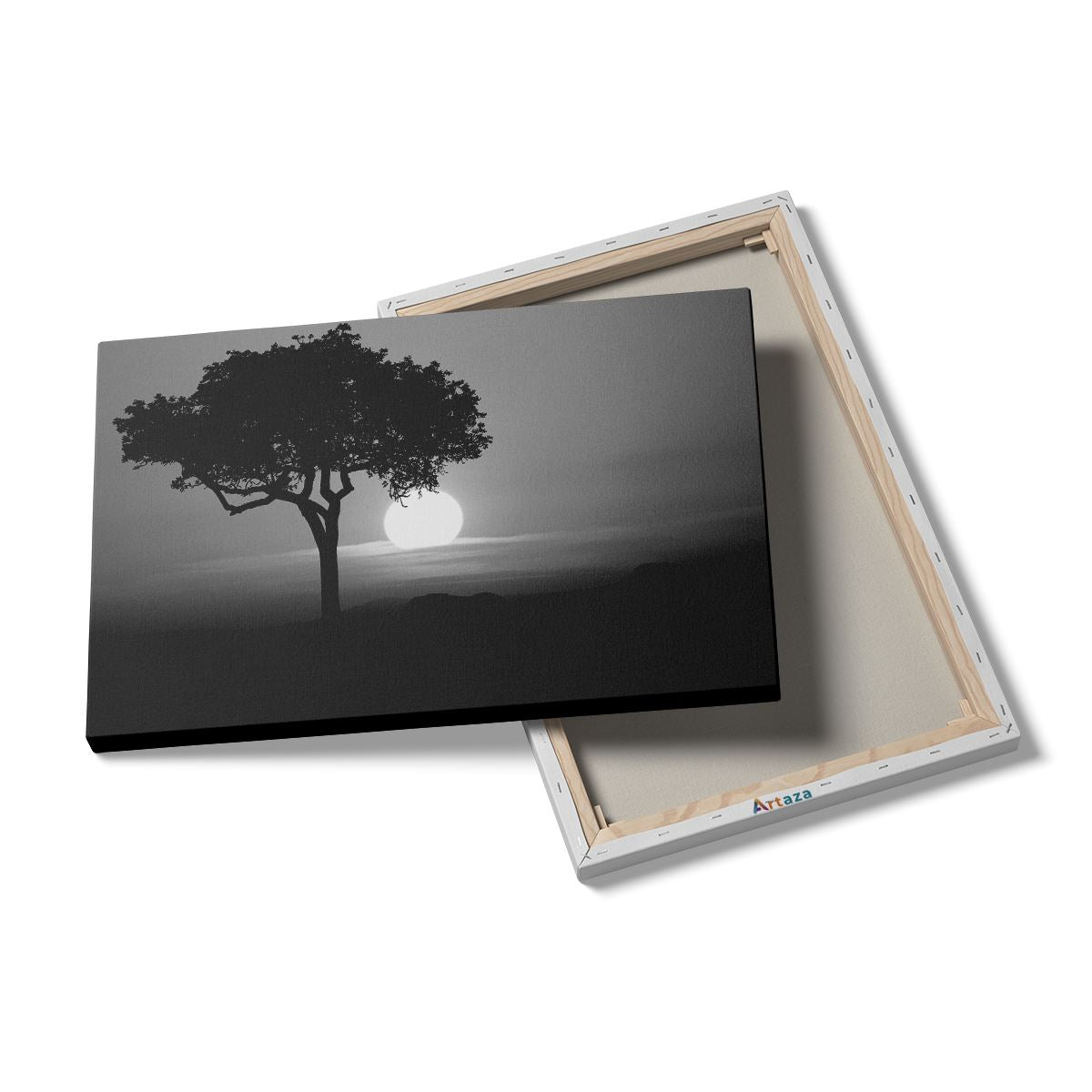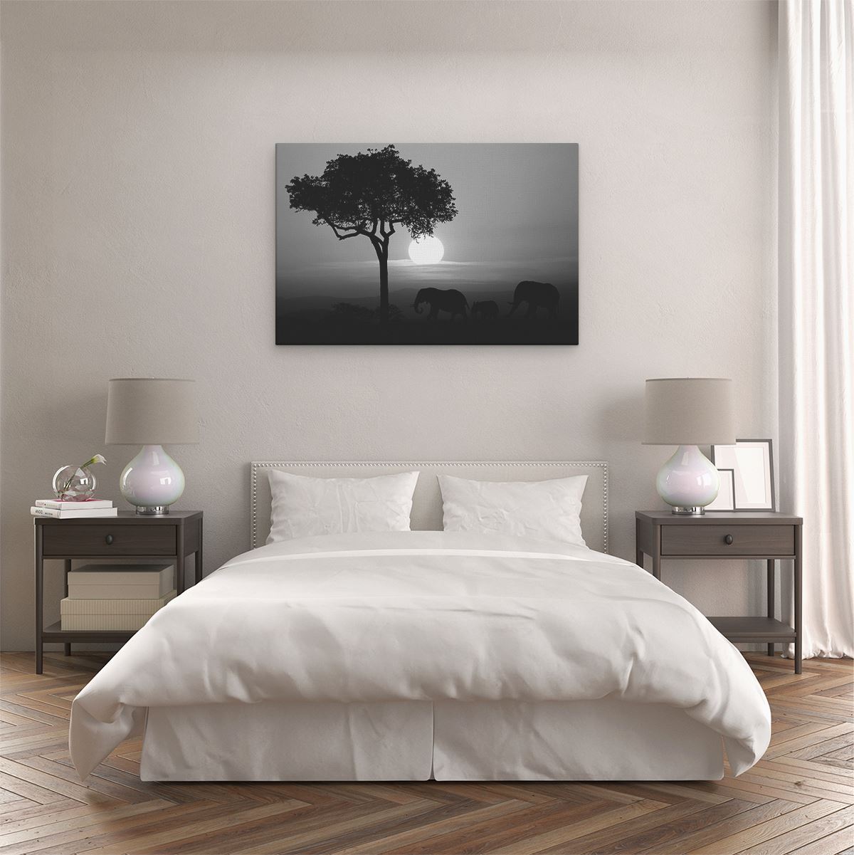 Schilderij Olifanten Familie bij Zonsondergang - Olifant - Zwart Wit