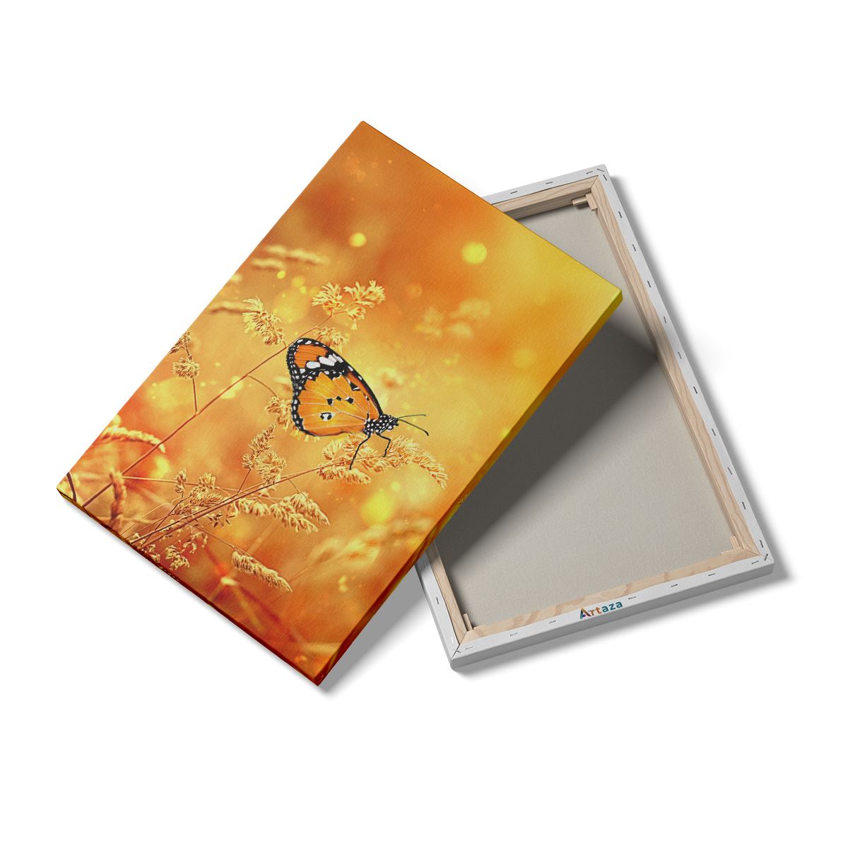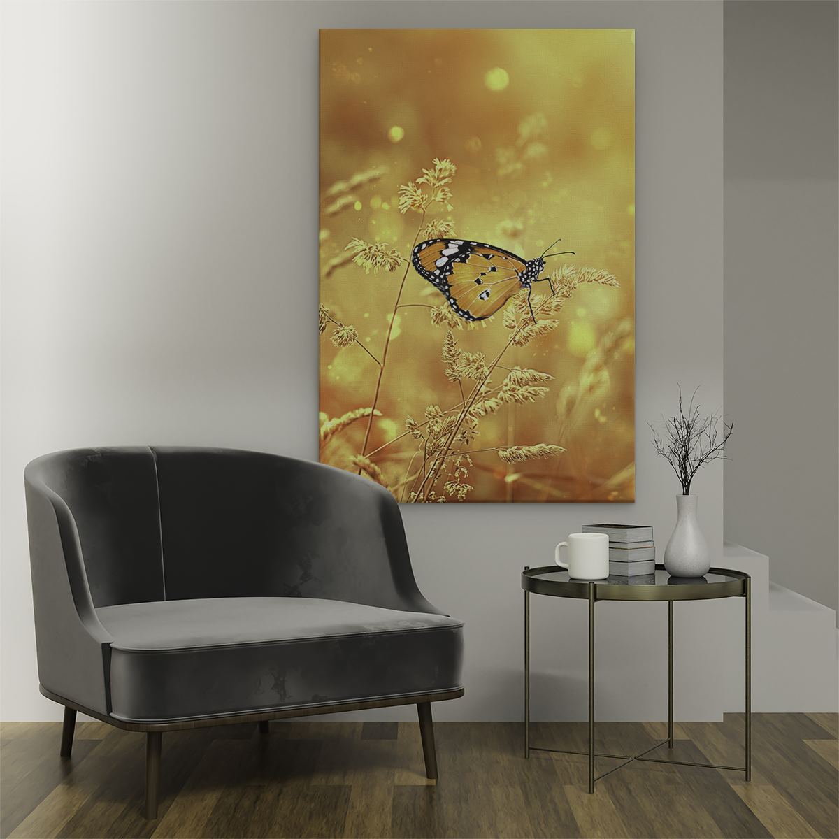 Schilderij Oranje Vlinder In Het Oranje Veld