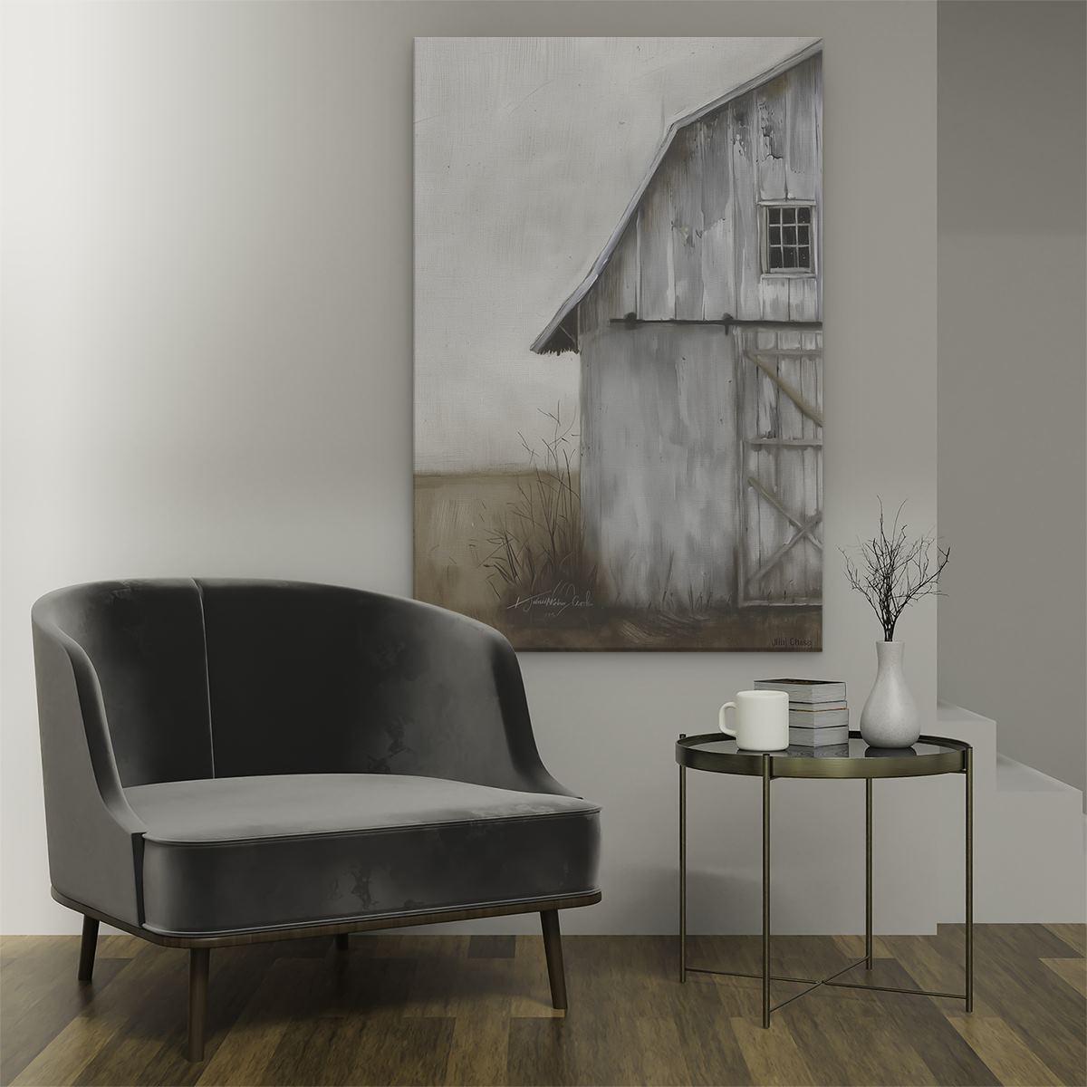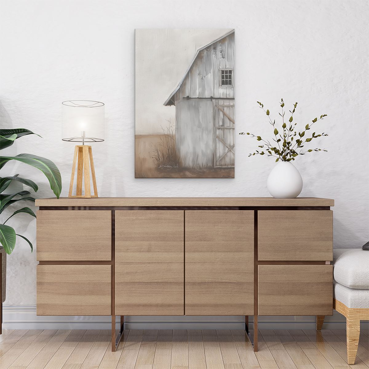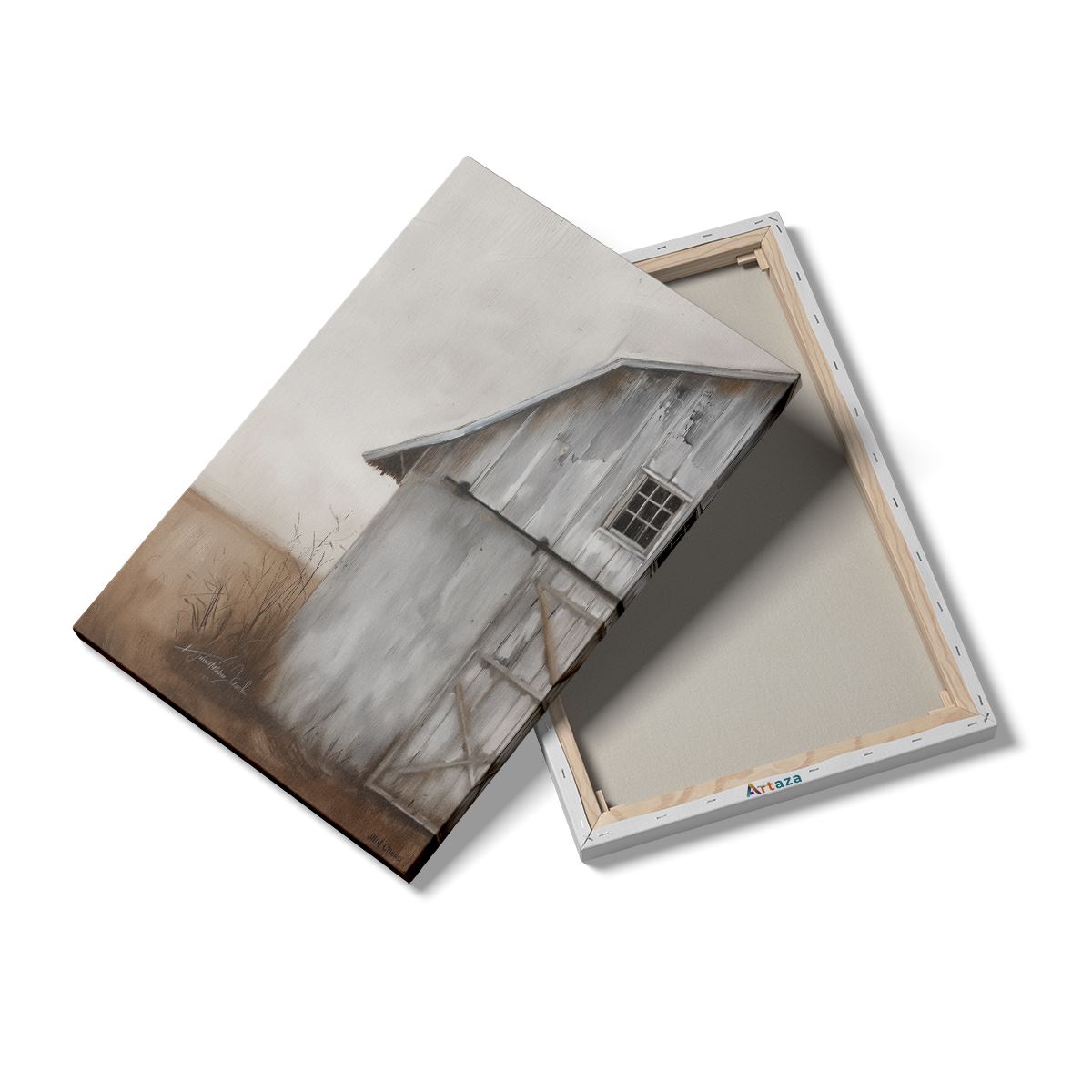 Schilderij Oude Schuur Midden in een Veld