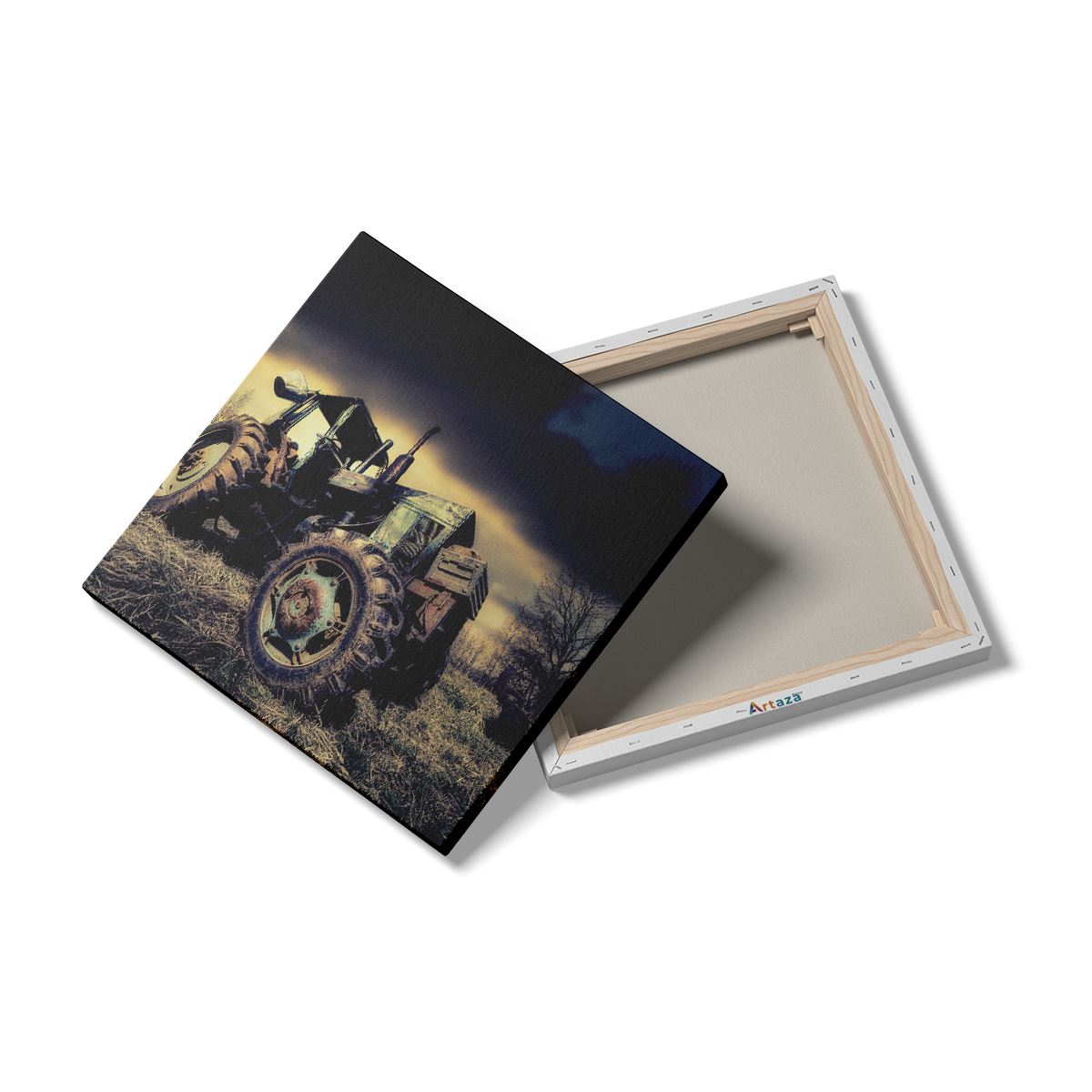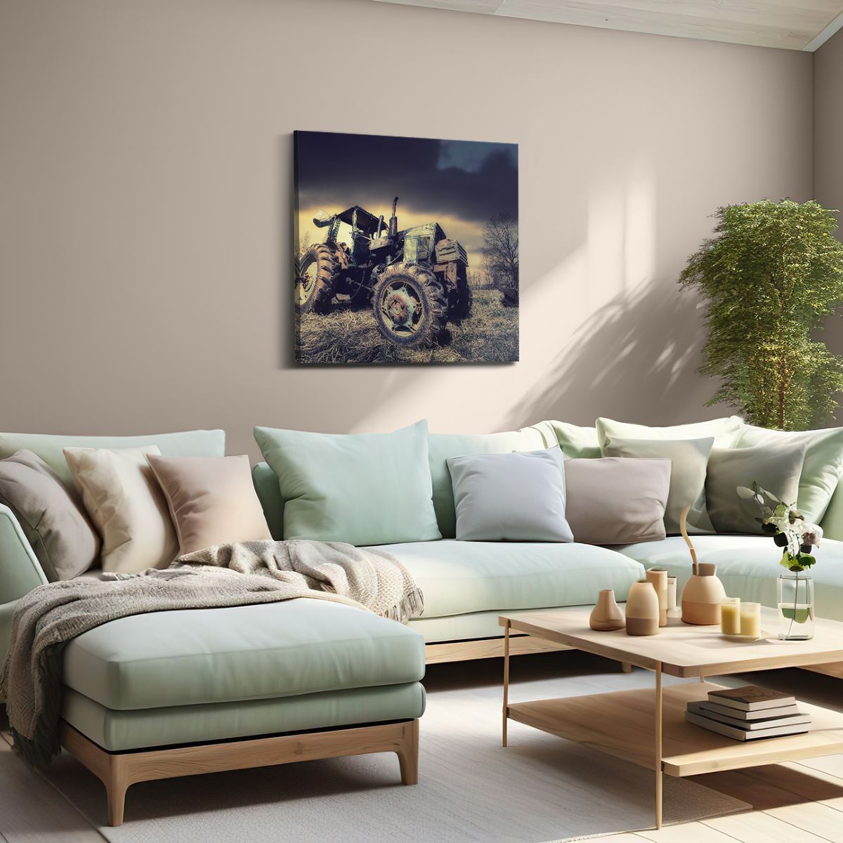 Schilderij Oude Tractor op het Grasveld - Trekker