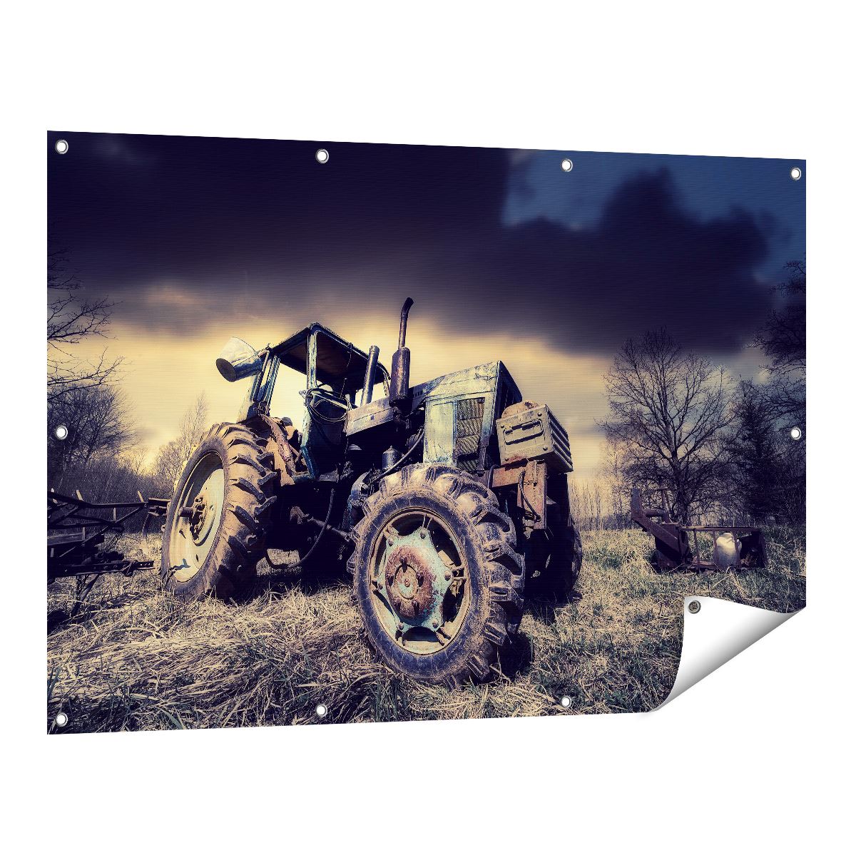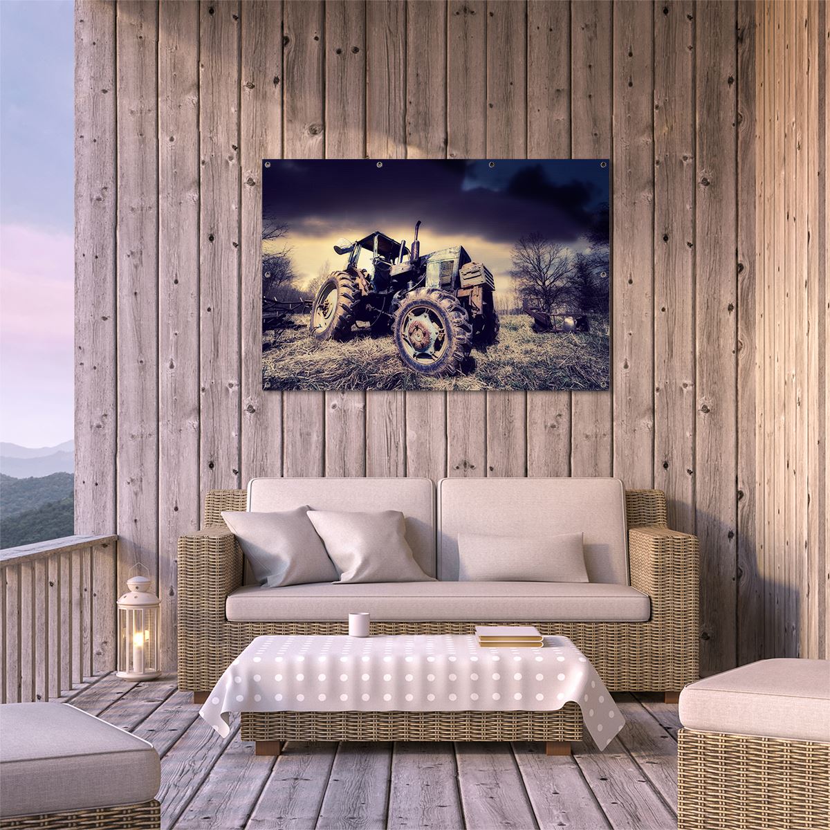 Tuinposter Oude Tractor op het Grasveld - Trekker