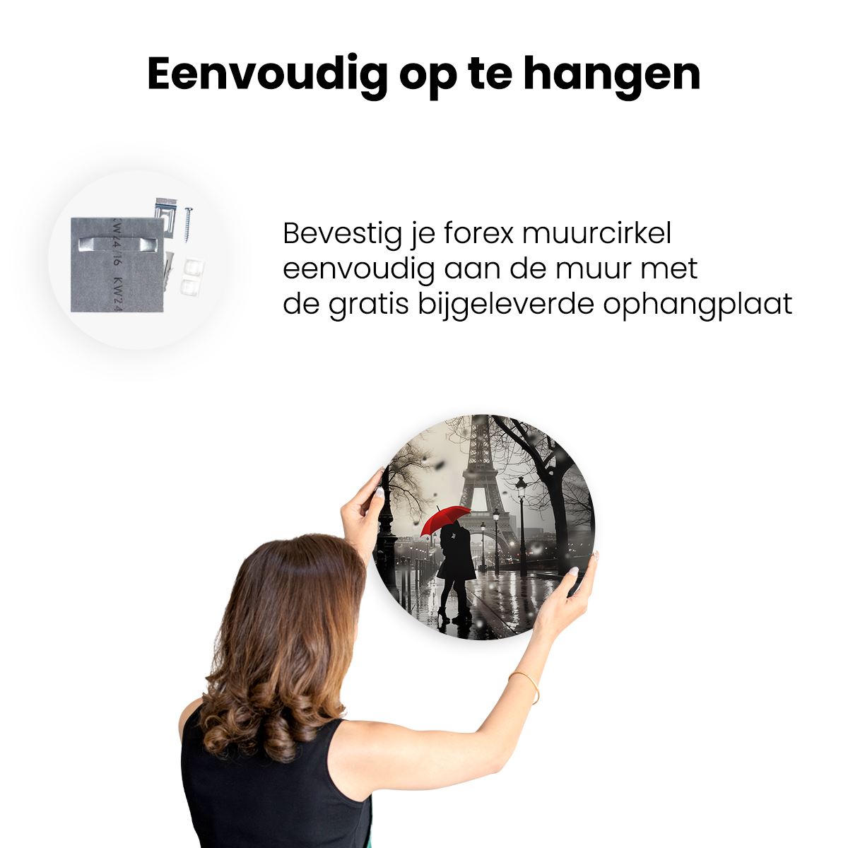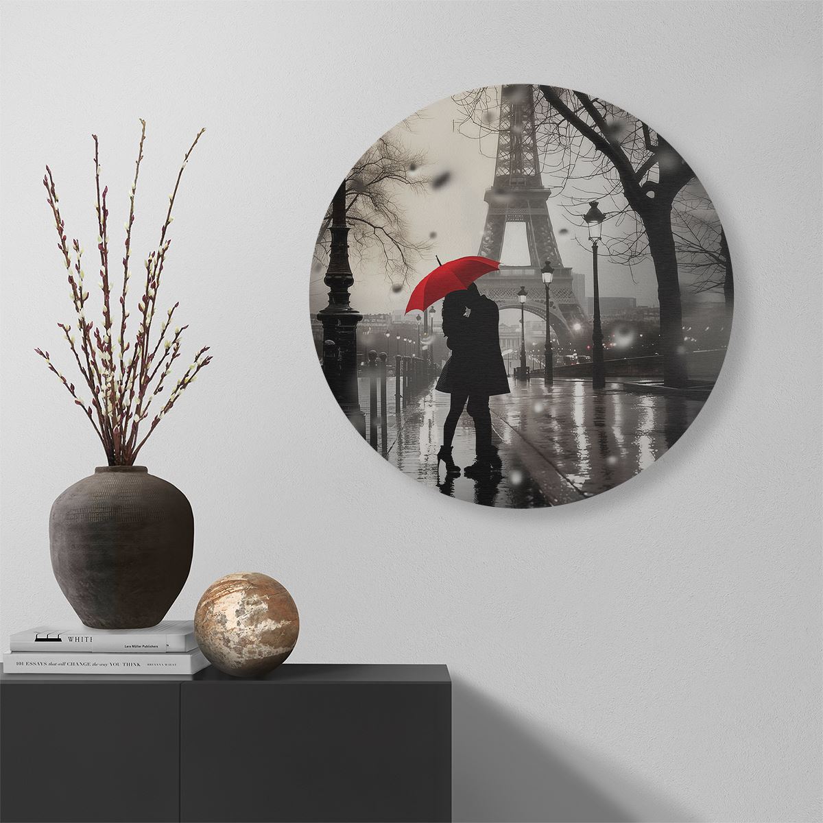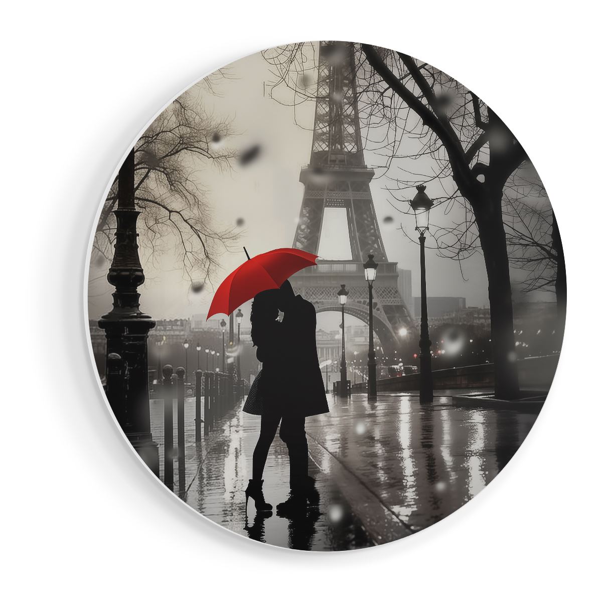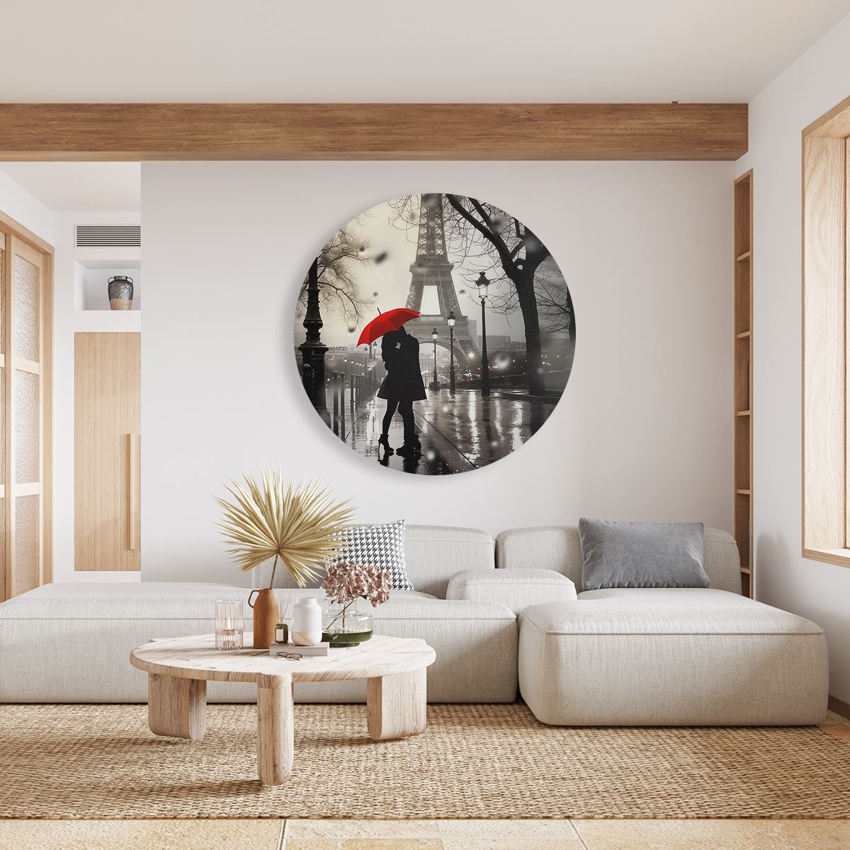 Wandcirkel Paar dat een Paraplu in de Regen Houdt Dichtbij de Eiffeltoren