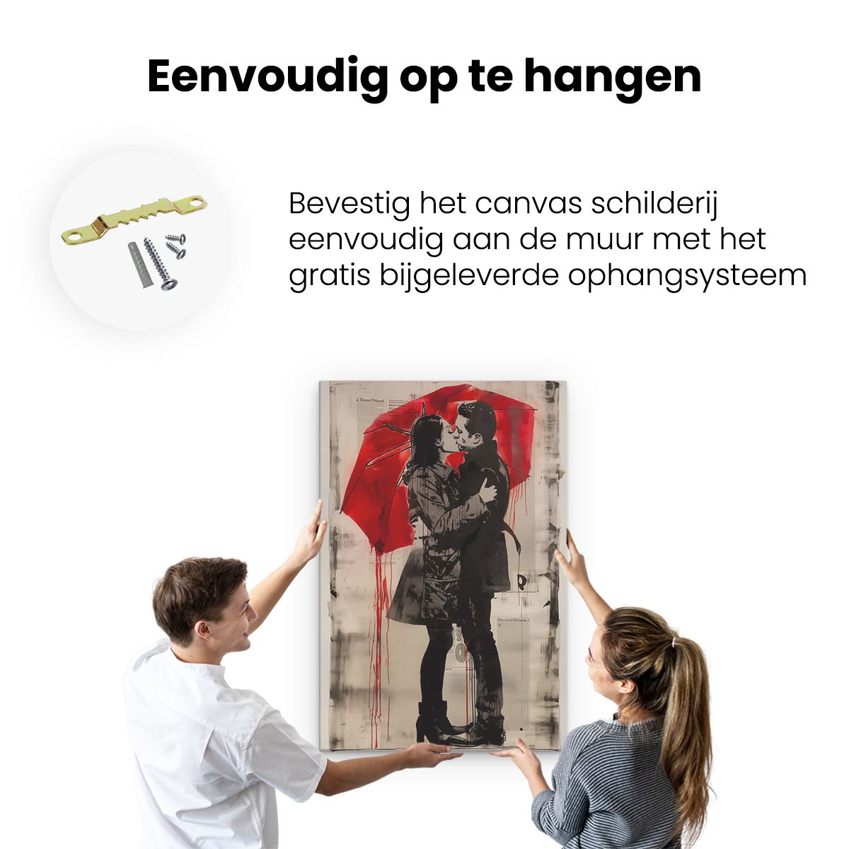 Bij aankoop ontvang je een meegeleverd ophangsysteem, zodat je op een simpele en snelle wijze het schilderij boven de bank of bed kan monteren.
