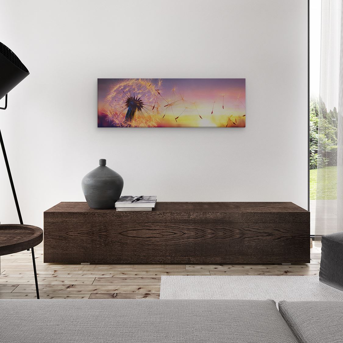 Schilderij Paardenbloem Tijdens Zonsondergang