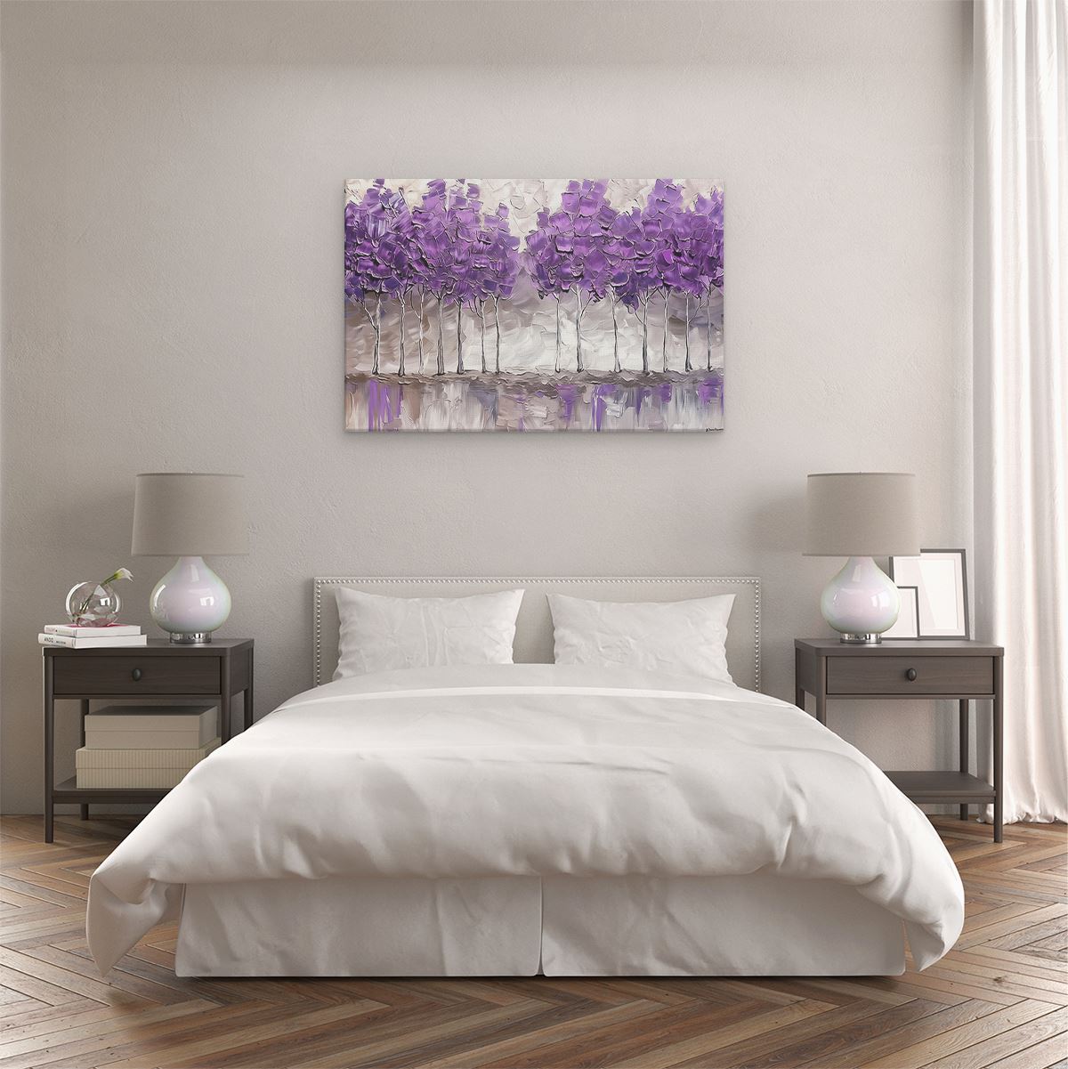 Schilderij Paarse Bomen op een Witte Achtergrond