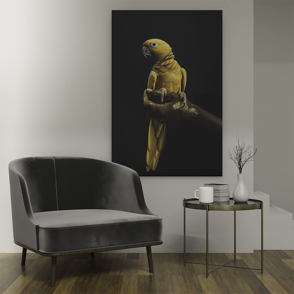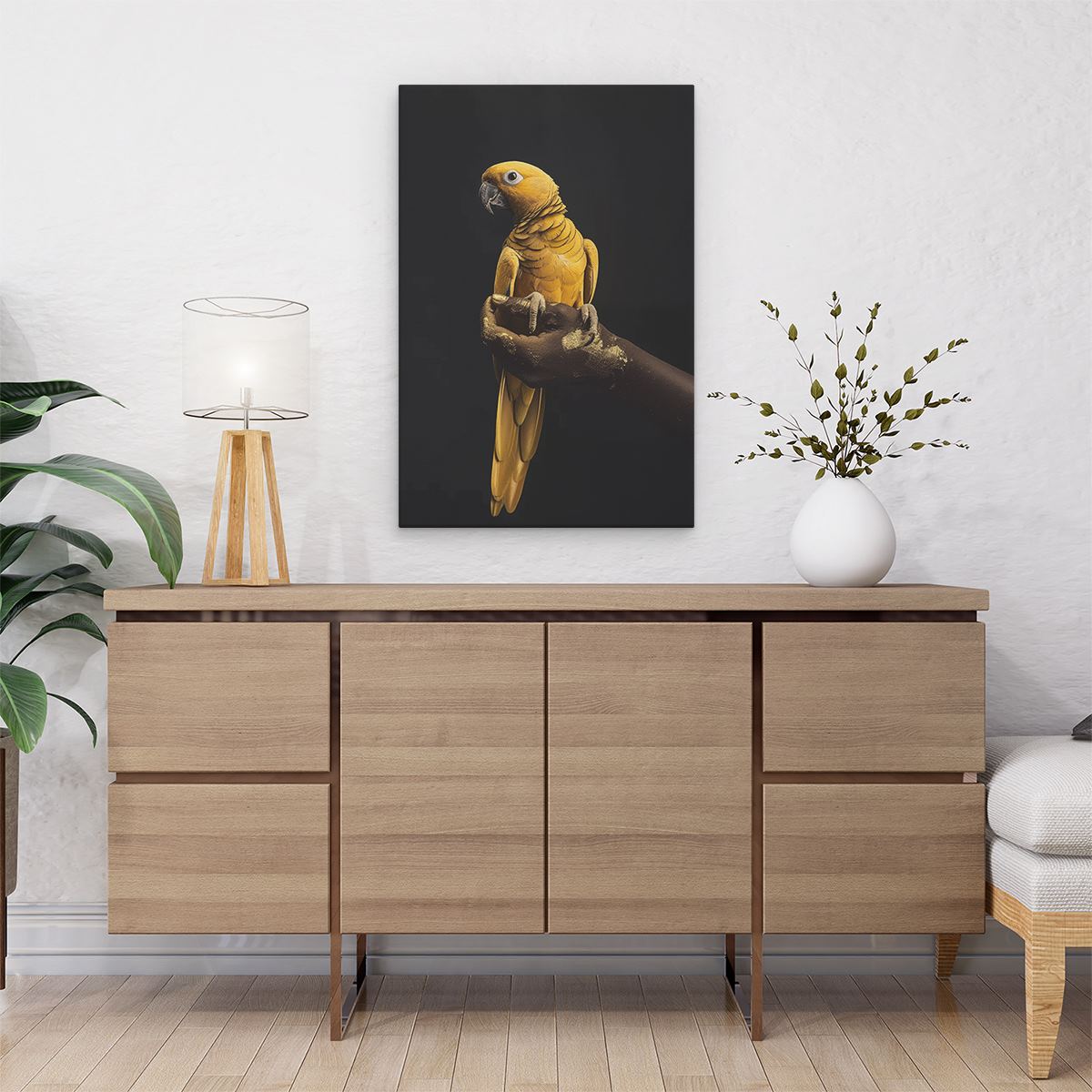 Schilderij Papegaai Zittend op Iemands Hand