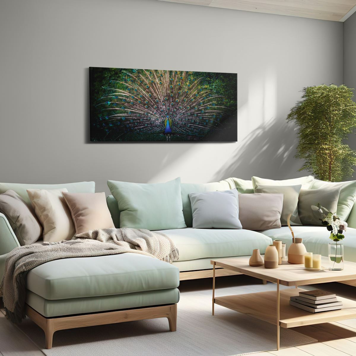 Schilderij Pauw Met Kleurrijke Veren - Kleur