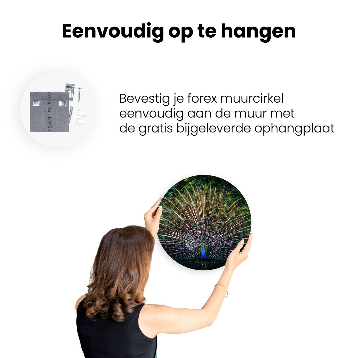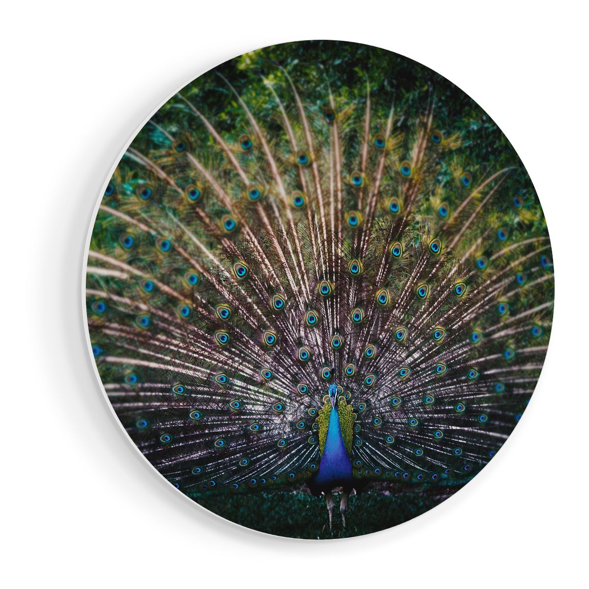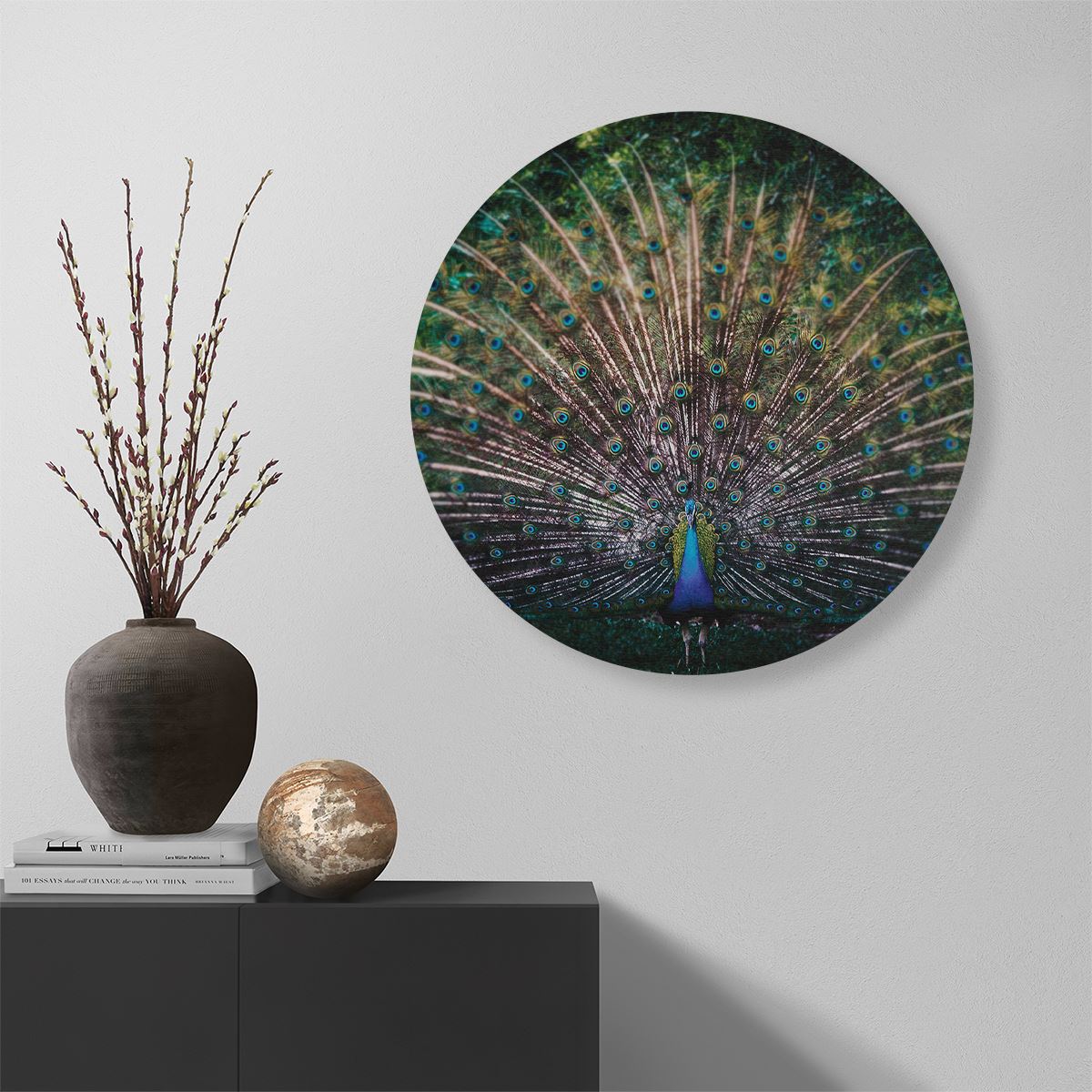 Wandcirkel Pauw Met Kleurrijke Veren - Kleur