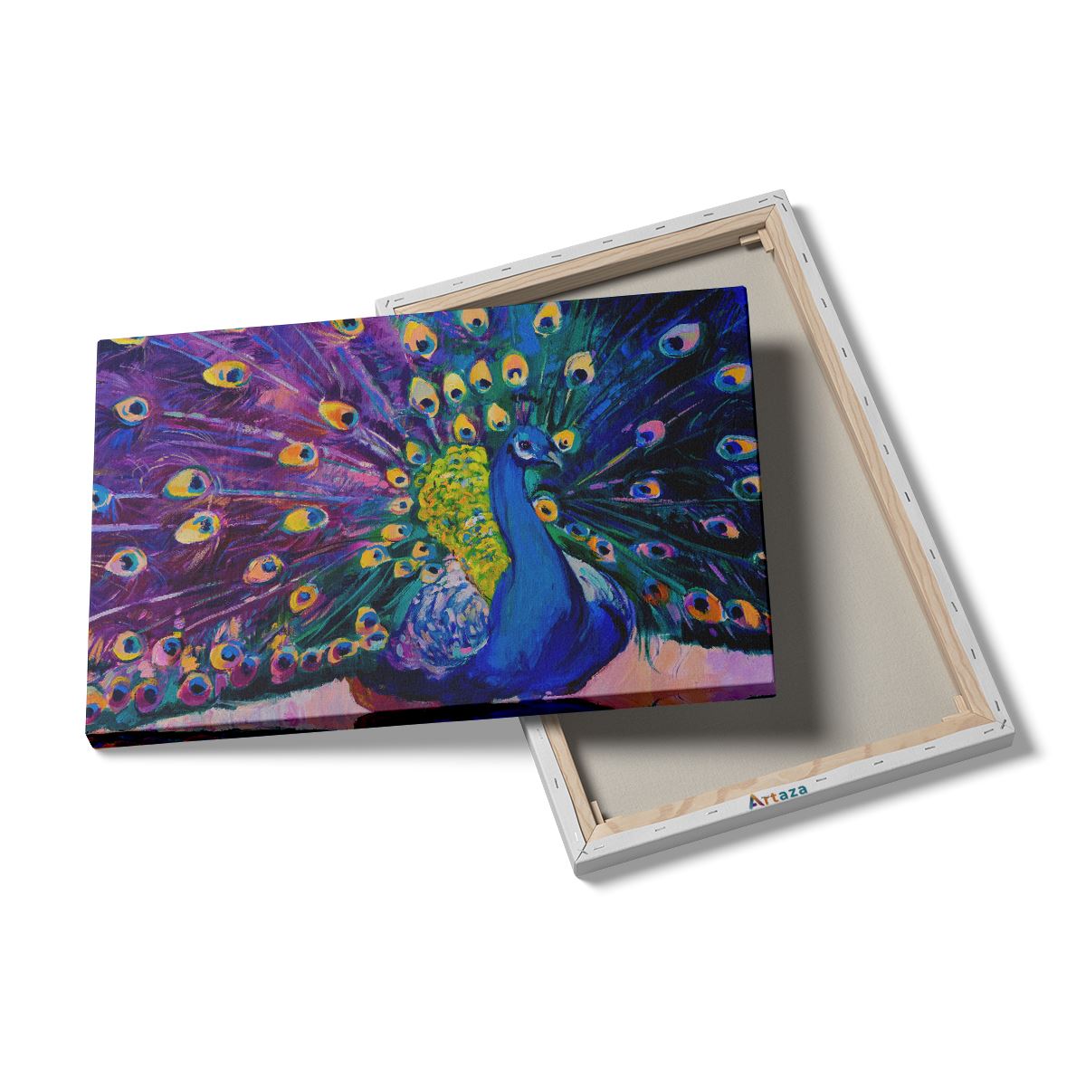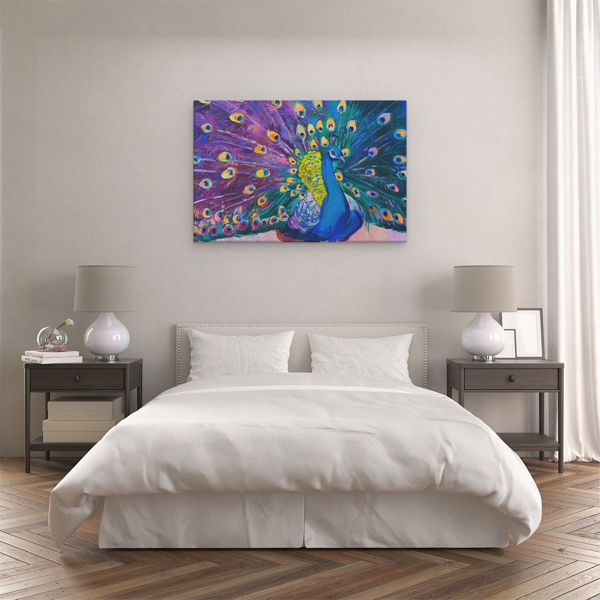 Schilderij Pauw Met Kleurrijke Veren Van Olieverf - Abstract