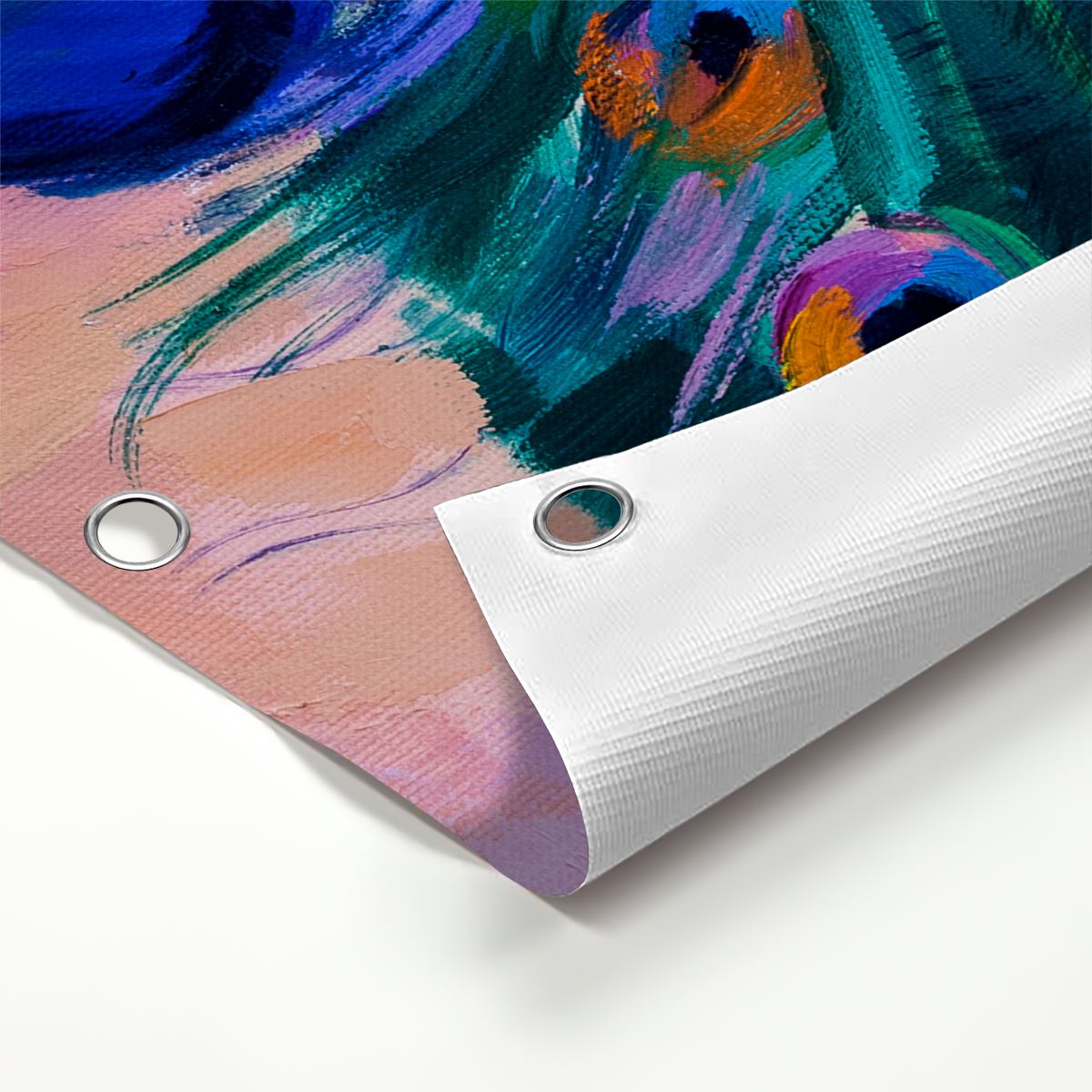 Door de ringen moet je een tiewrap bevestigen, waarmee je de tuinposter aan schroeven aan bijvoorbeeld de schutting kunt bevestigen.