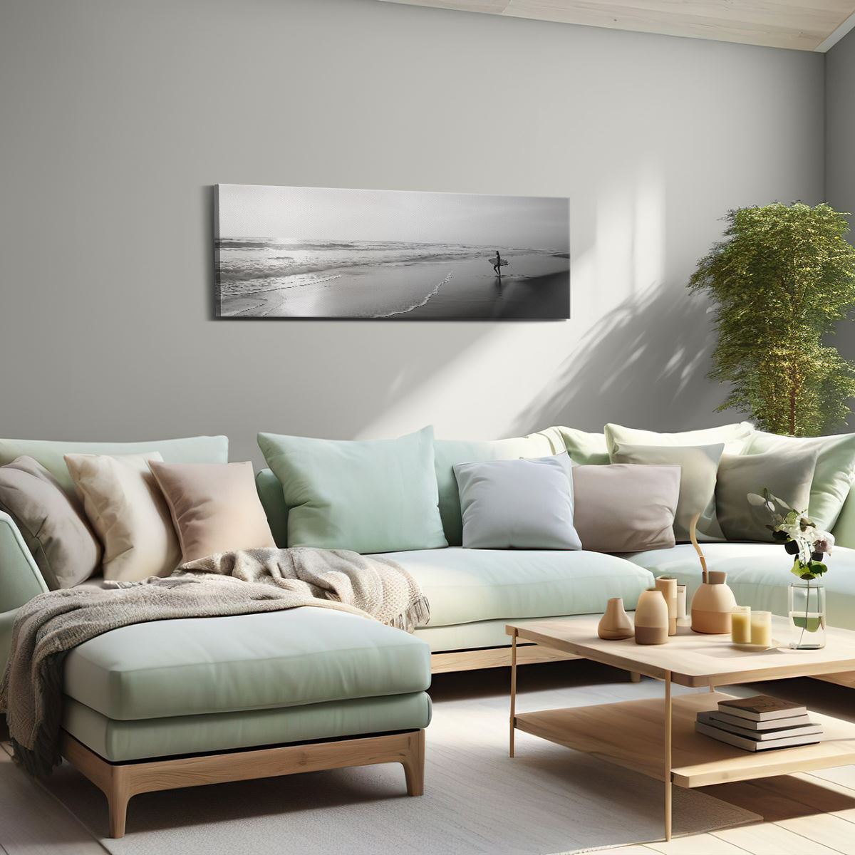 Schilderij Persoon die met een Surfplank op het Strand Loopt