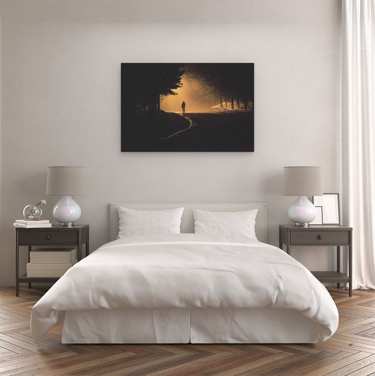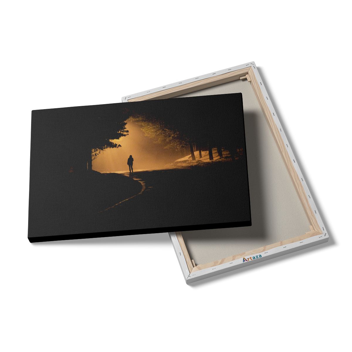 Schilderij Persoon Op Een Donkere Weg In Het Bos